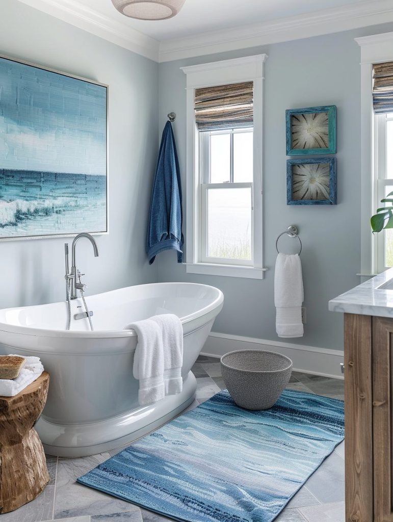 This approach captures the essence of seaside serenity, making it a popular choice for a soothing bathroom retreat.