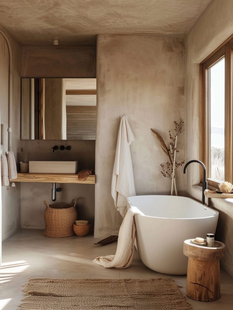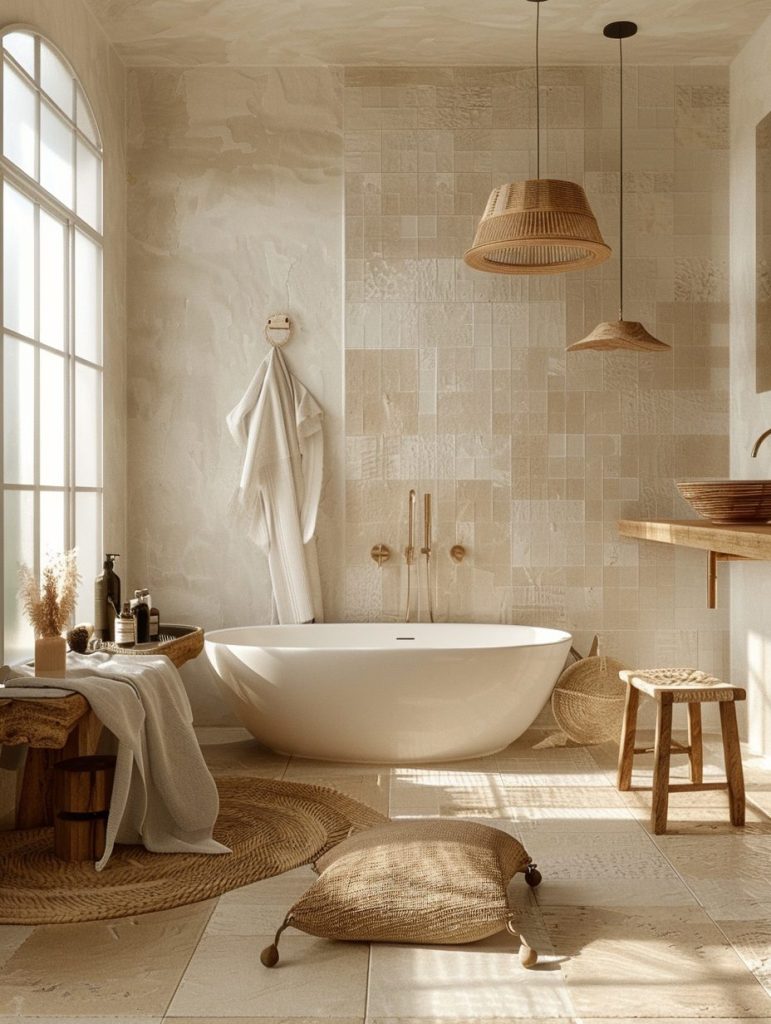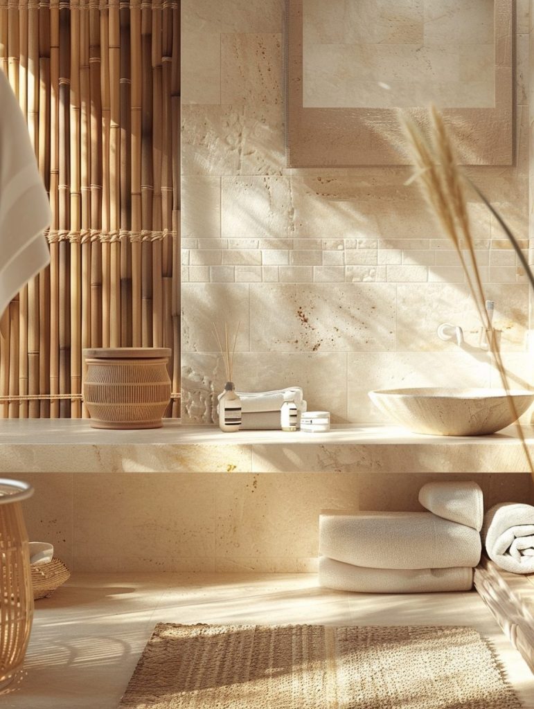 Natural elements like bamboo, stone, and plush textiles enhance the tranquil vibe, making this style perfect for anyone looking to transform their bathroom into a peaceful personal retreat.