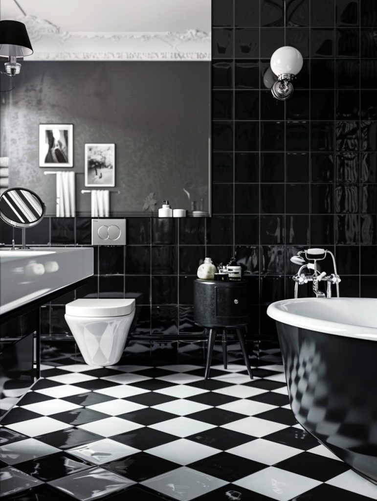 A black and white monochromatic bathroom effortlessly delivers elegance and sophistication.