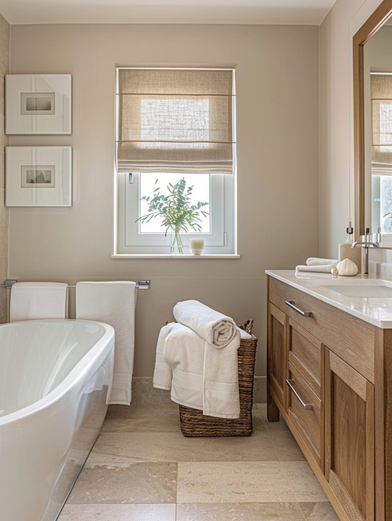 Muted taupes and beiges offer a versatile and sophisticated way to elevate your bathroom without relying on bold or flashy colors. These gentle neutrals create a calm, understated elegance that pairs beautifully with a variety of textures and materials.