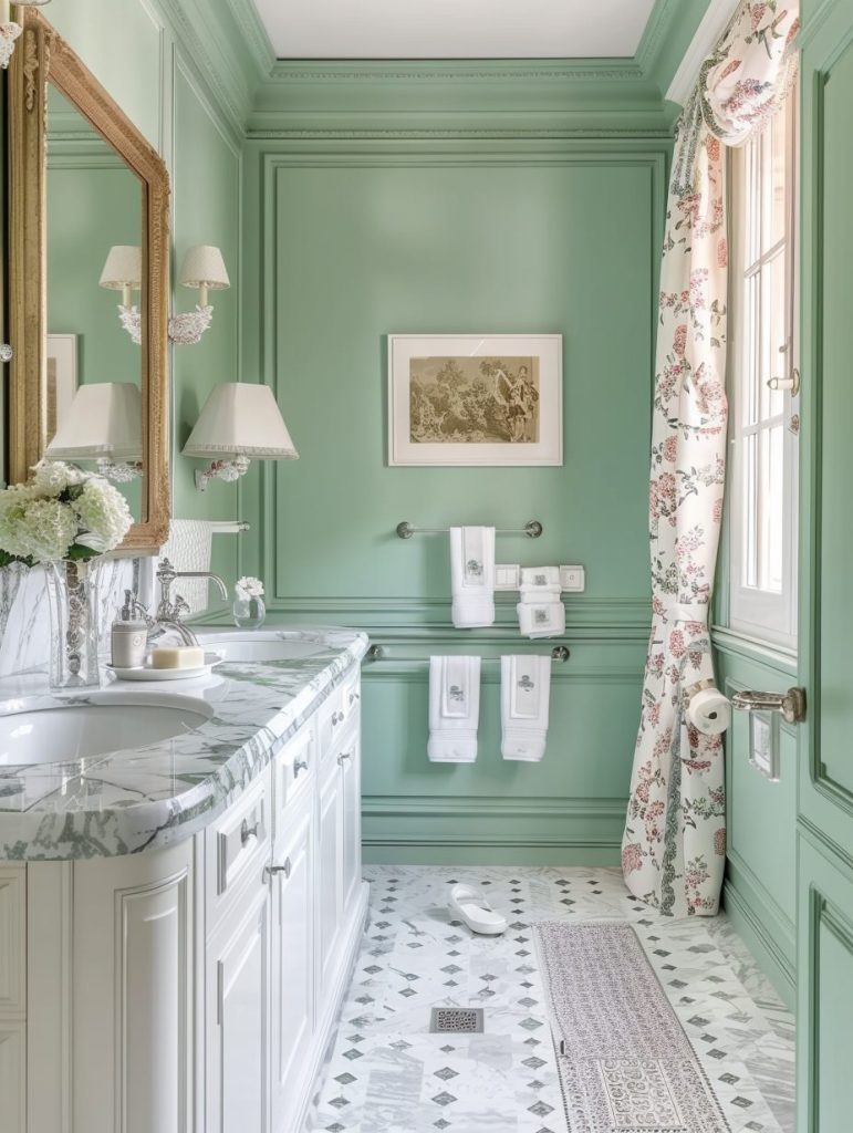 Soft, romantic pinks can transform your bathroom into a graceful and inviting escape. Blush-toned walls combined with white or cream fixtures and delicate floral accents create a serene, feminine charm.
