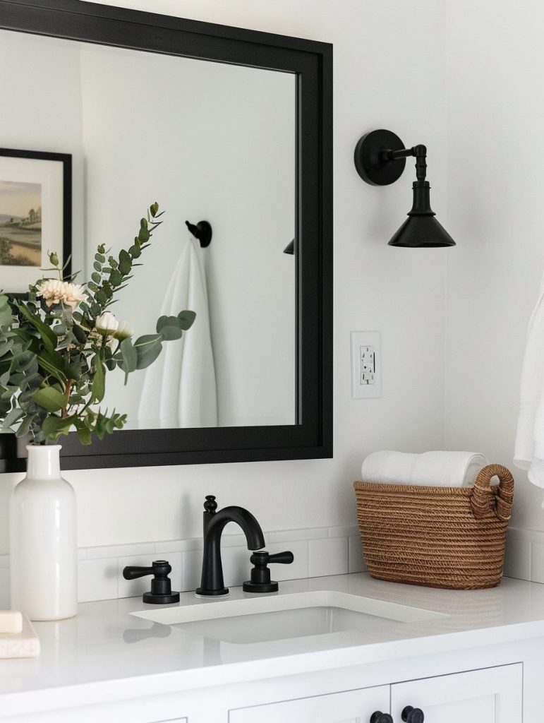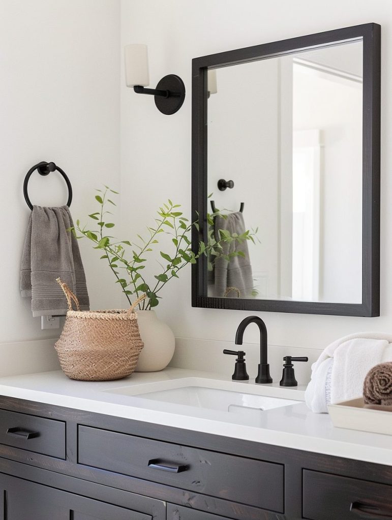 Sleek black accents bring a modern and minimalist flair to your bathroom. When paired with white or light-colored walls, black fixtures and accessories create a bold, clean contrast that defines contemporary simplicity.