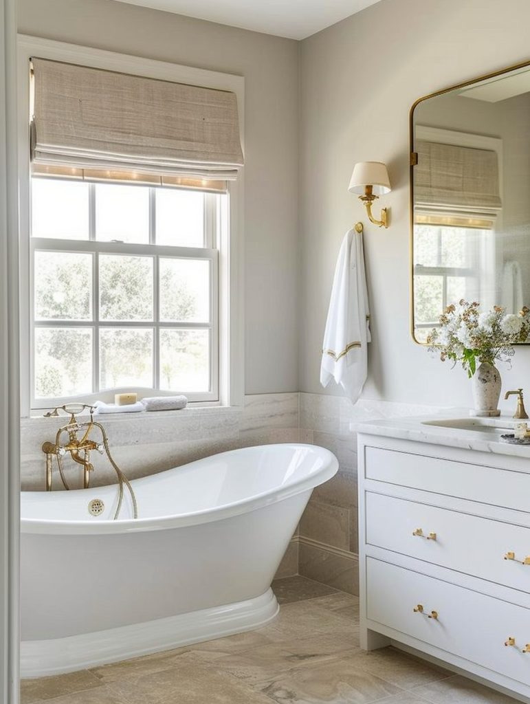 Classic tones like creams and off-whites bring timeless warmth and charm to a bathroom. Paired with neutral fixtures and natural materials, these shades create a clean, elegant, and welcoming environment.