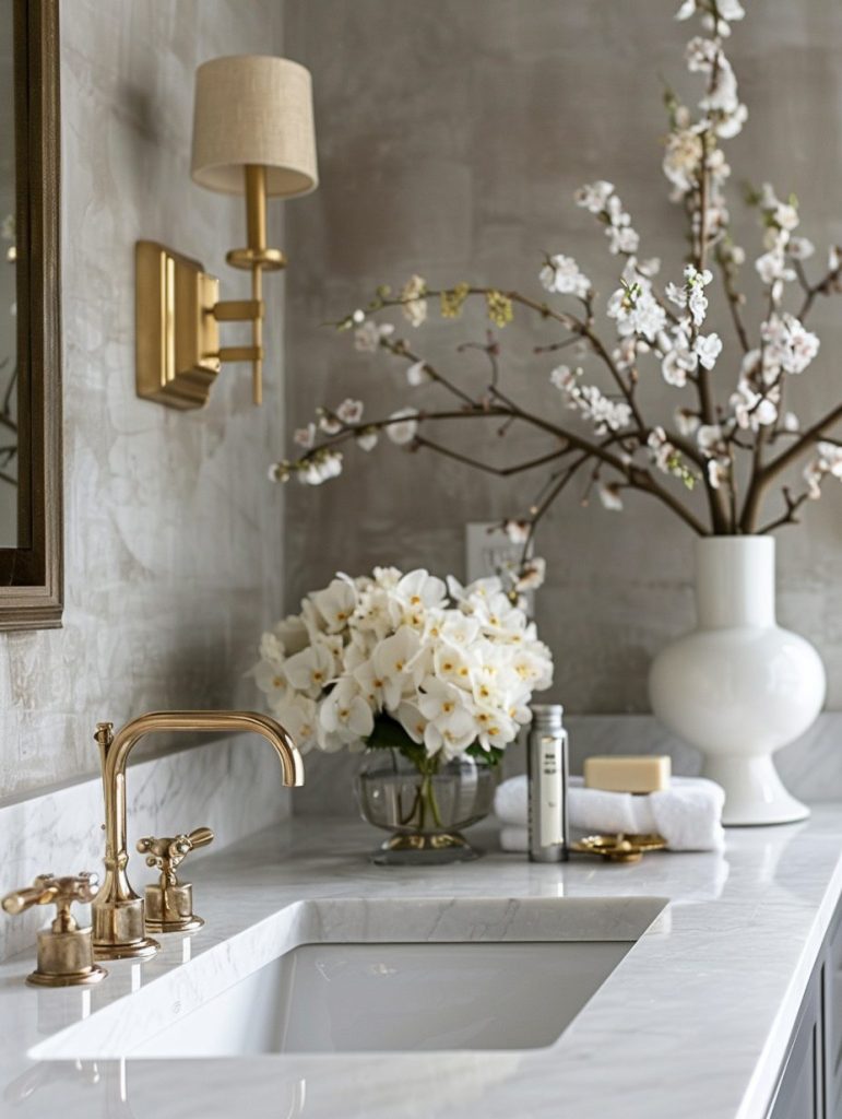 Delicate metallic accents can add a refined touch of elegance to your bathroom without overwhelming the space. Incorporate finishes like bronze, copper, or brushed nickel in elements such as mirror frames, fixtures, and subtle hardware.