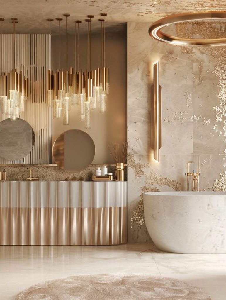 Pairing these metallics with neutral walls and contemporary decor enhances the luxurious yet modern aesthetic.