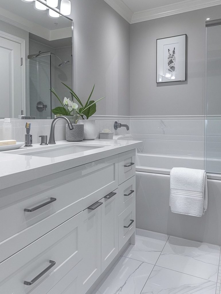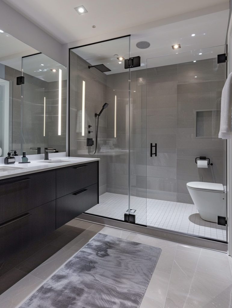 Contemporary bathroom design is all about clean lines, airy ambiance, and cutting-edge style. Opt for a neutral palette of greys, whites, and blacks to maintain a sleek, modern look. Choose fixtures that are both functional and visually refined, such as frameless glass showers and minimalist vanities.