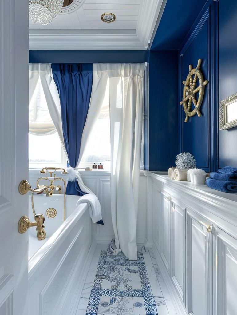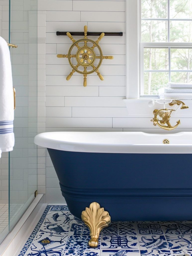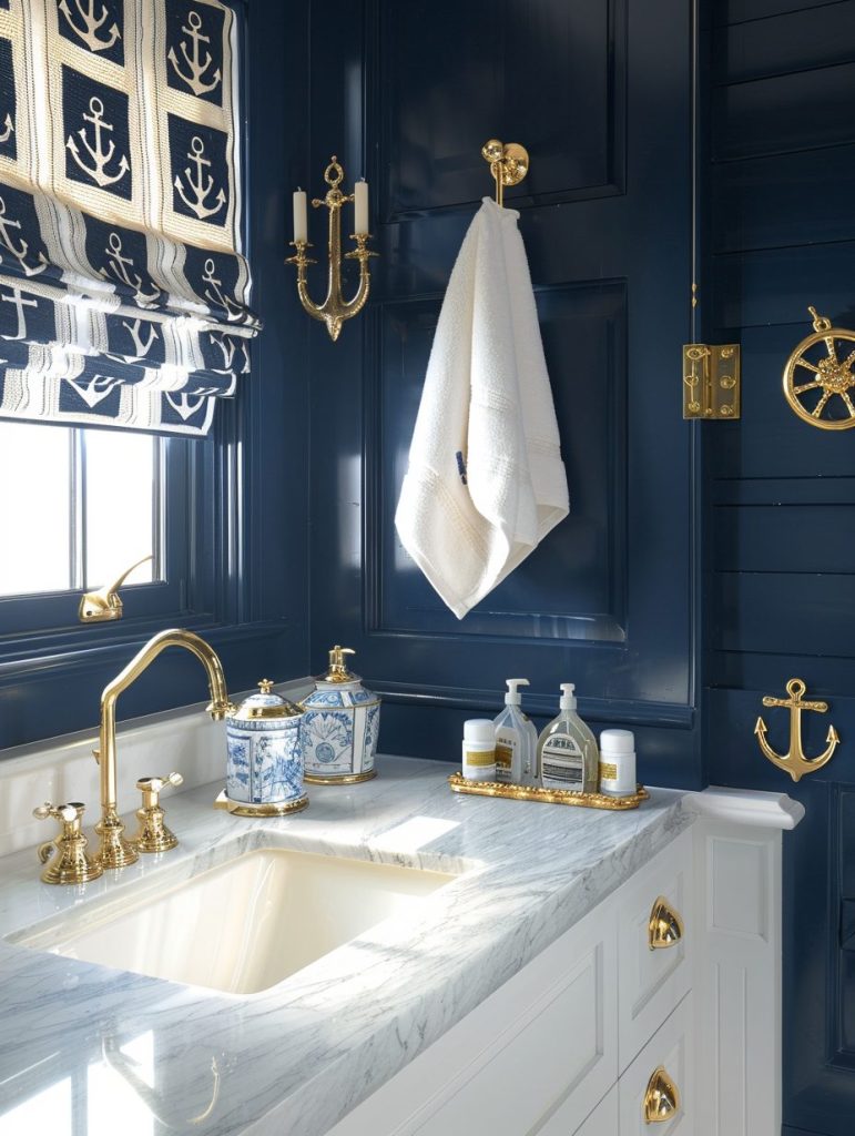 Nautical-themed décor brings a coastal, sea-inspired atmosphere to your bathroom.