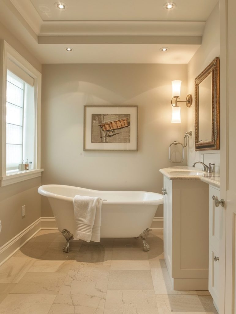 Mix traditional elements—such as a pedestal sink or clawfoot tub—with contemporary touches like streamlined lighting and modern hardware. The result is a balanced, elegant space that feels both current and enduring.