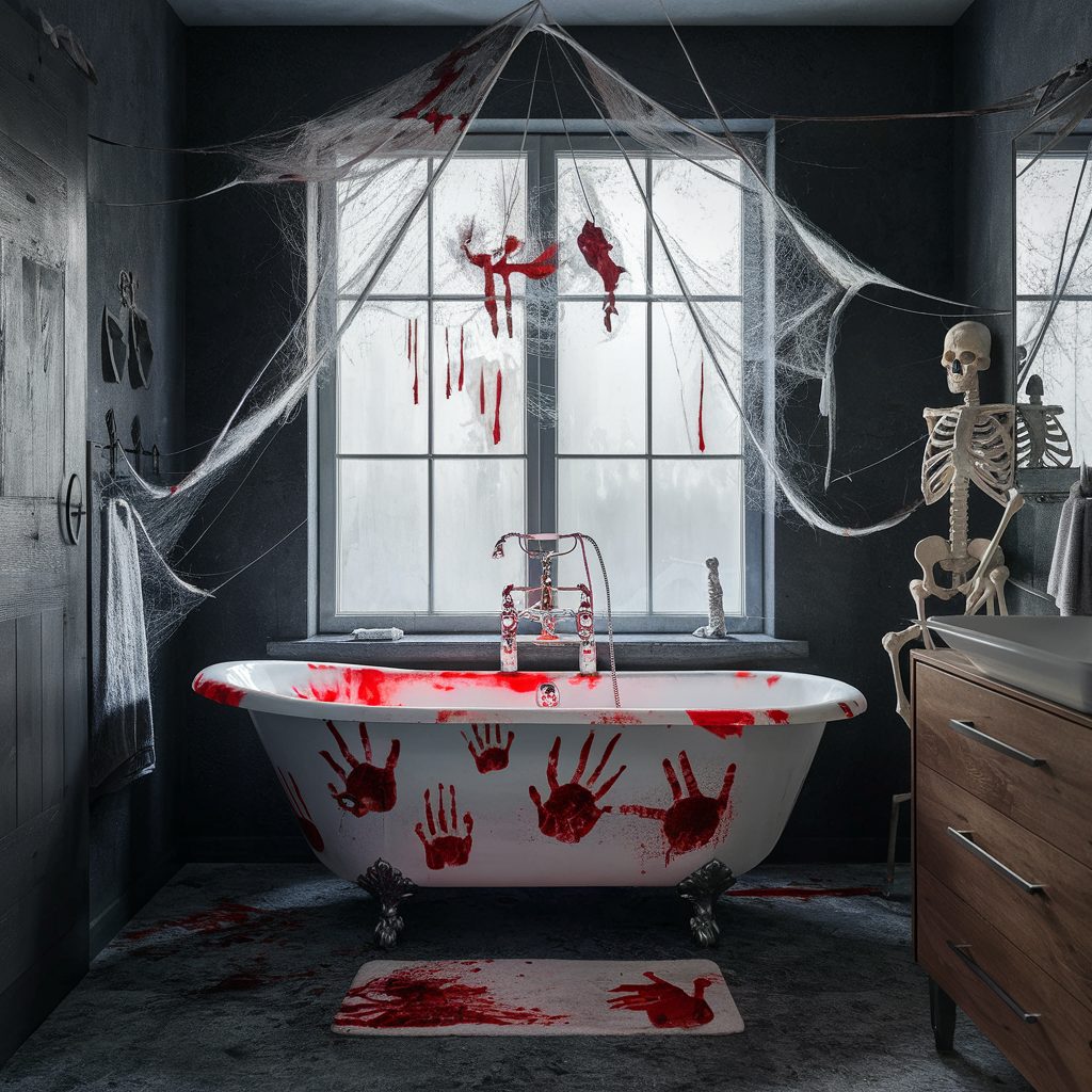 For the more adventurous decorator, consider a DIY approach—using baking soda and red paint to create realistic bloody footprints that lead guests right to the tub for a spine-chilling effect.