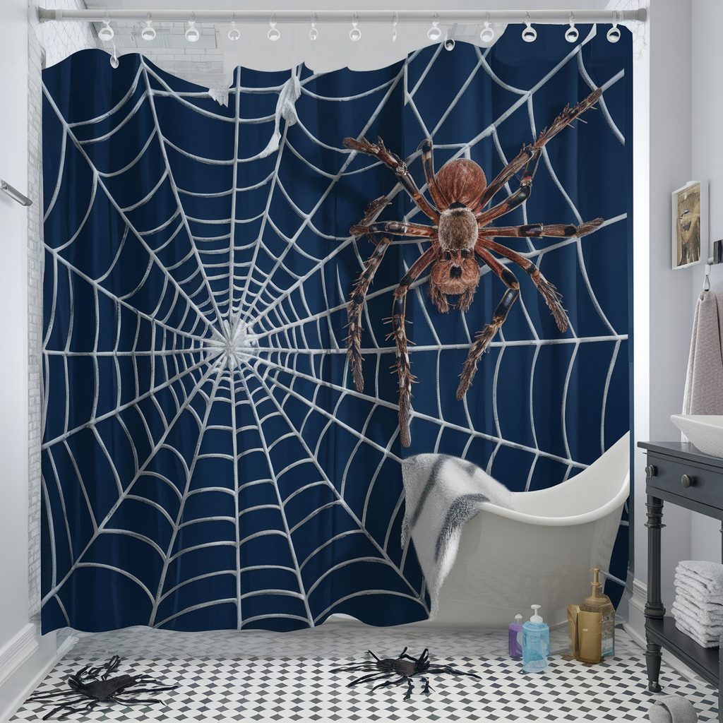 To elevate the look, add DIY spiders made from pipe cleaners or felt, or pick up realistic-looking spider props from stores like Target and scatter them strategically around the room. For an extra eerie touch, consider incorporating a spider web-patterned shower curtain or matching bath mat to tie everything together.