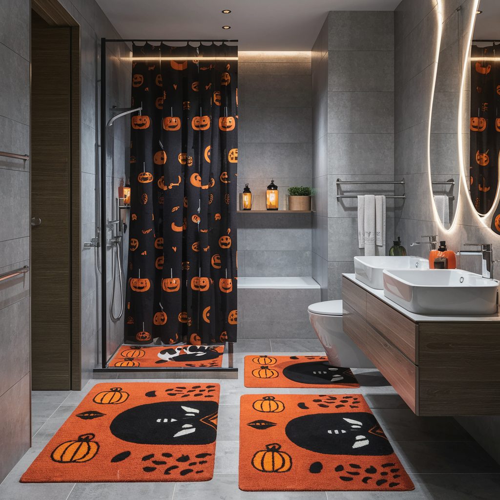 These themed floor accents work especially well in guest and small bathrooms, where space is limited but every decorative detail counts. With the right design, your Halloween-themed rugs can turn even a quick visit into a spine-tingling experience.