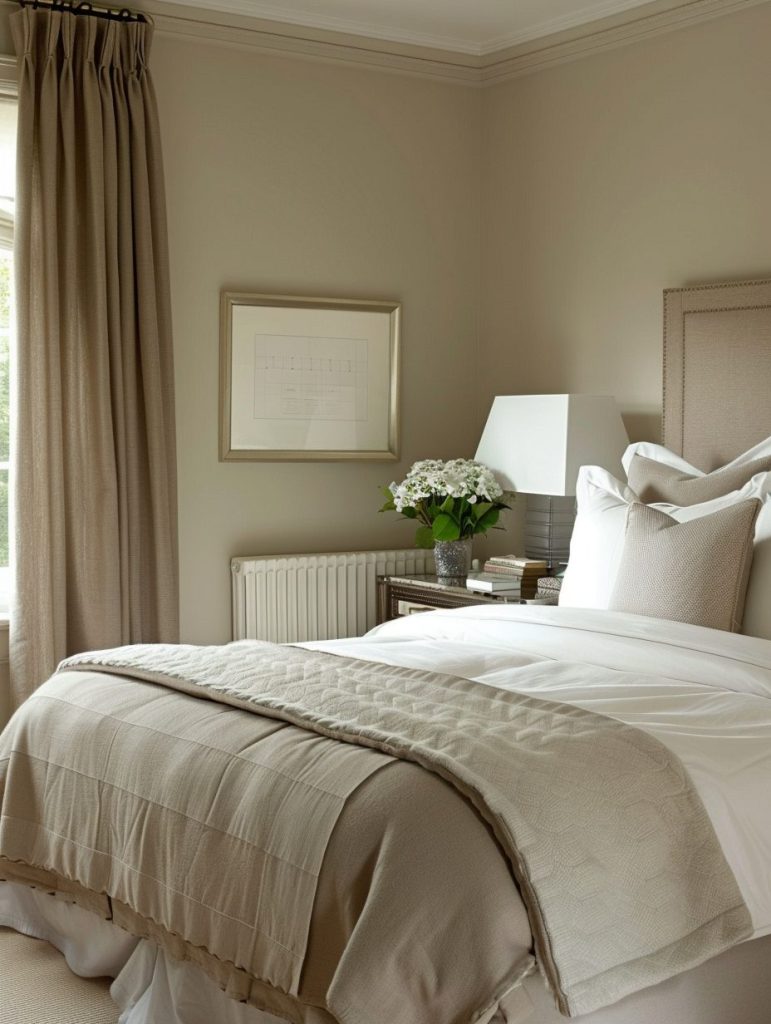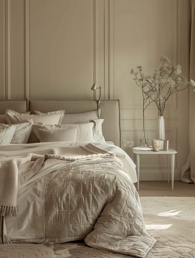 Combine these tones with a gray headboard, soft bedding, and simple decor pieces to maintain an elegant yet subtle vibe. Neutral palettes are perfect for those who love a clean, minimalistic design.