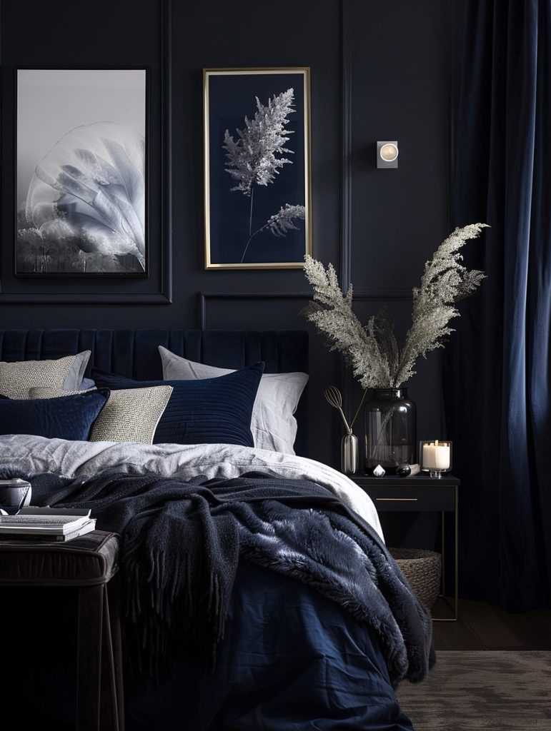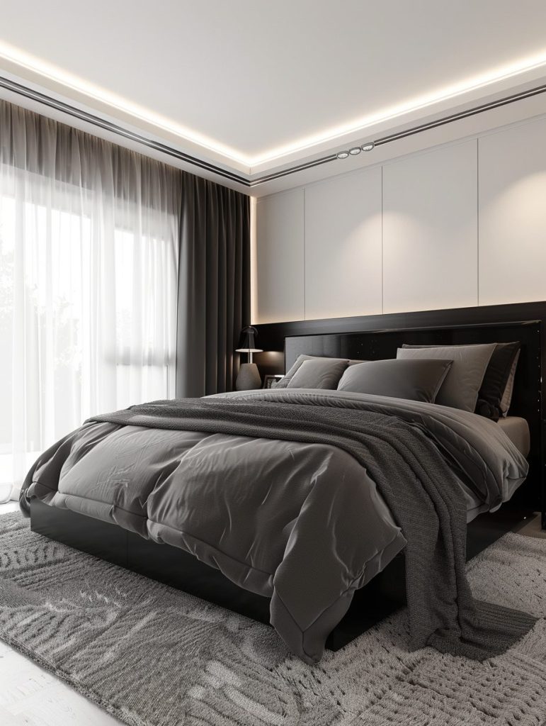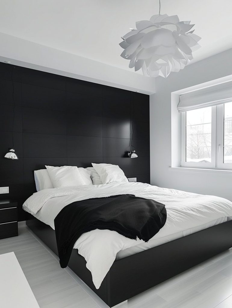 A well-designed bedroom includes the right lighting fixtures to match both function and style. Choose lights that suit your needs and complement dark color schemes. Wall sconces and warm bedside lamps can add a cozy and inviting mood to the space.