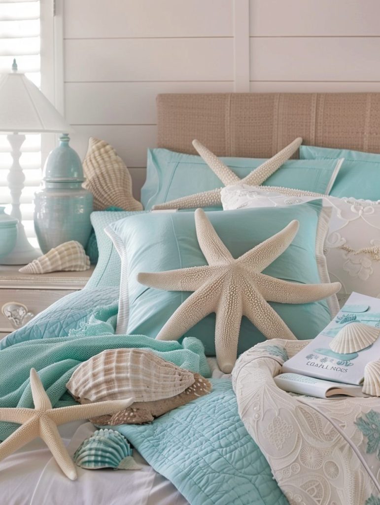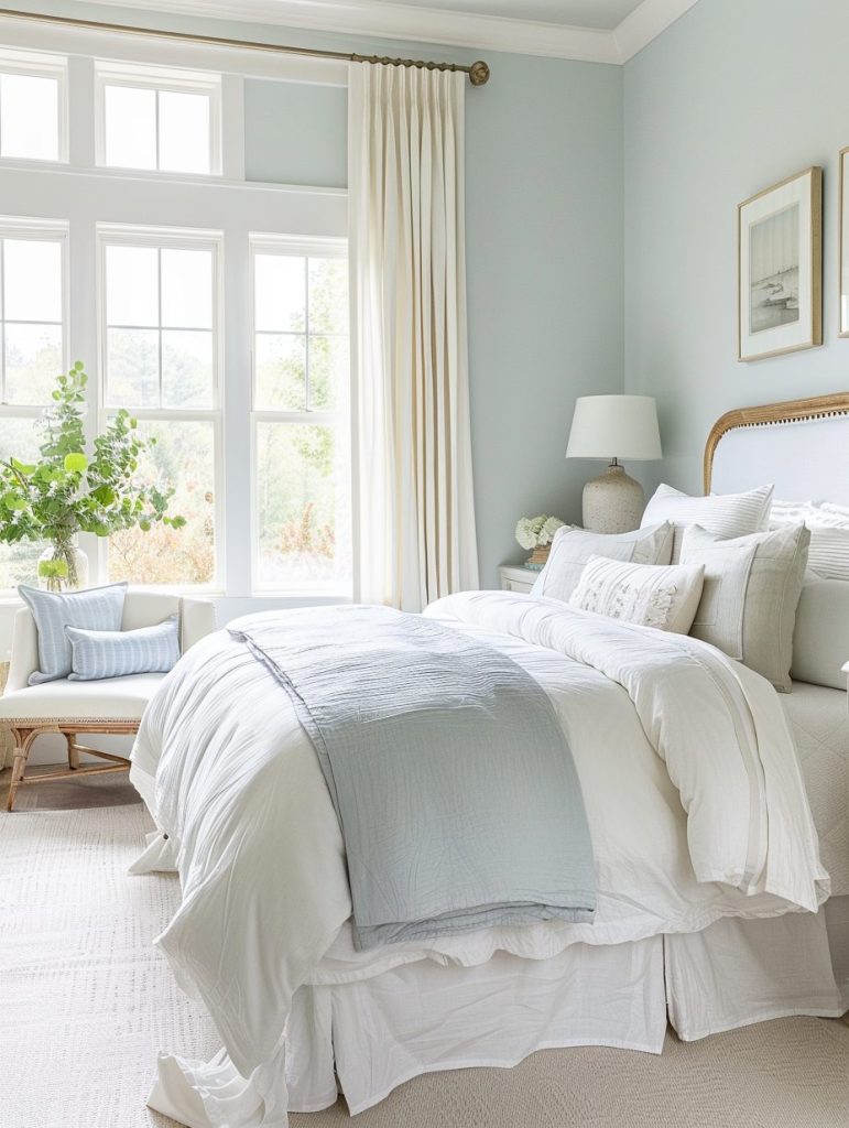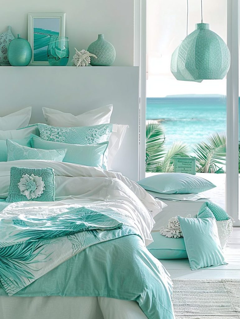 Pair them with white or light wood furniture to keep the space feeling open and fresh. This color scheme is especially ideal for a beach-inspired or coastal-style bedroom makeover.