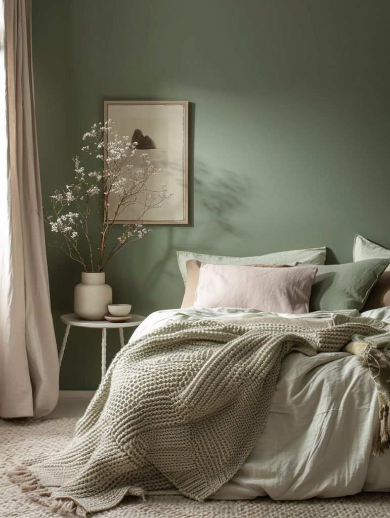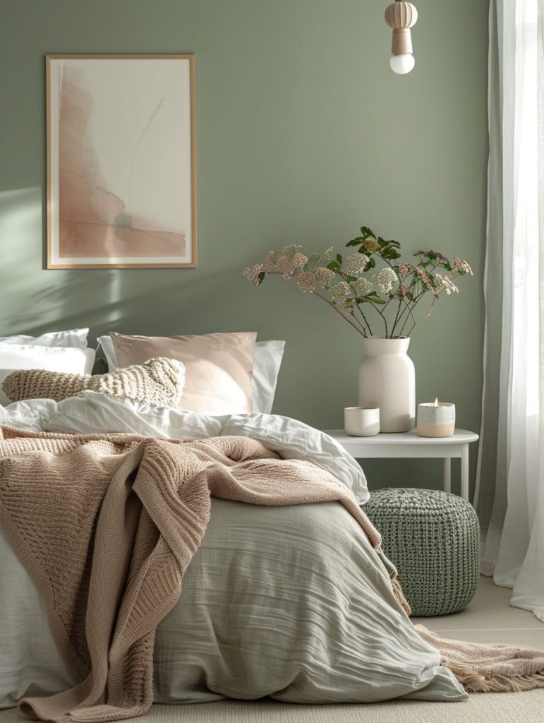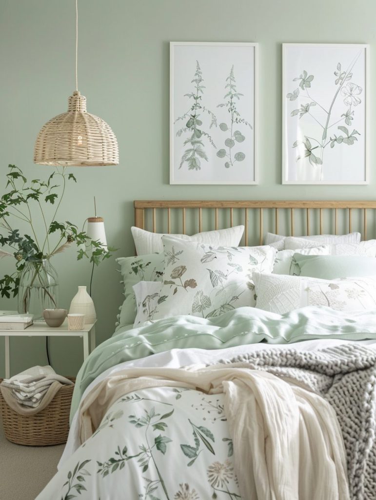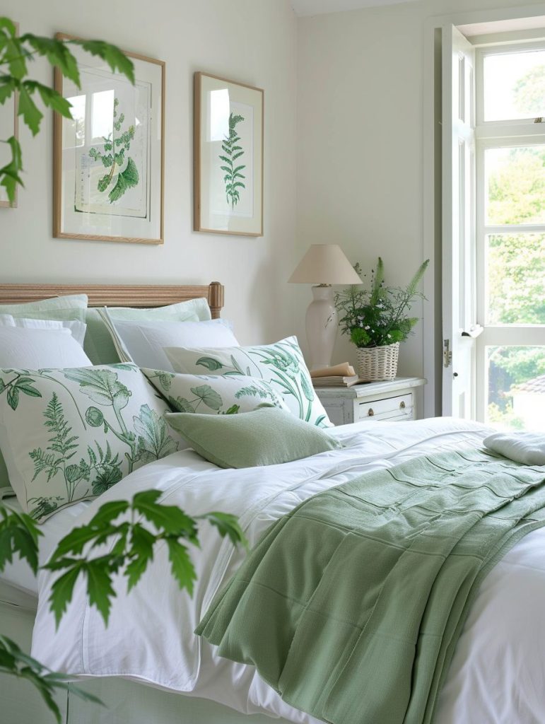 To enhance the natural vibe, include botanical prints in your fabrics or decor. This color combination is ideal for those who want a relaxing room filled with the healing and soothing feel of nature.