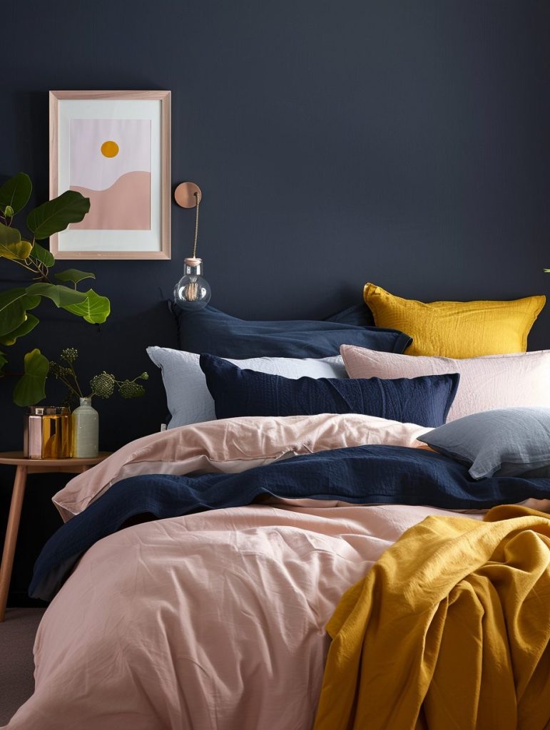 Trying out unexpected color combinations is a fun way to refresh your bedroom and give it a creative, energetic feel. Mix colors like navy with mustard or teal with coral to create a bold and eye-catching space.