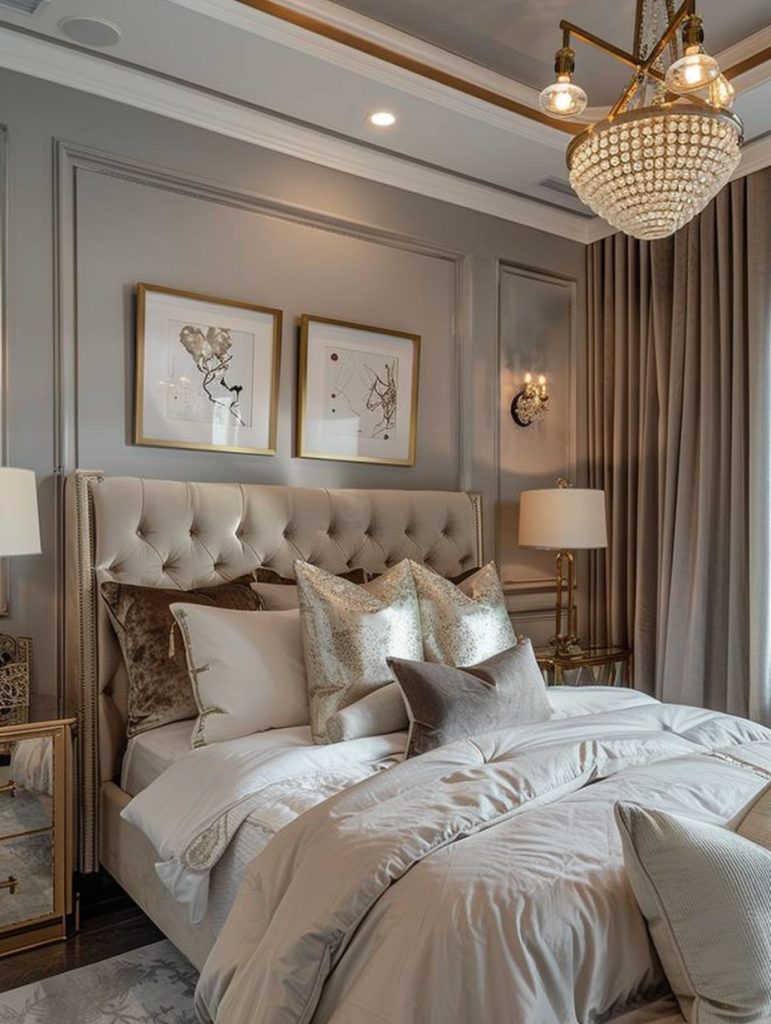 Pair them with neutral-colored walls and bedding to create a balanced and classy look. This color scheme is a great option for anyone aiming to design a bedroom that feels both stylish and upscale.