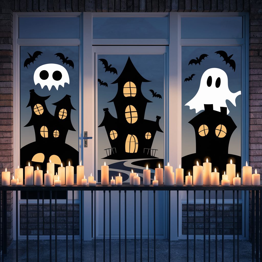 Apply them to your balcony windows or sliding doors, creating an eerie impression that can be seen both from inside and outside. For an even more dramatic effect, pair the window clings with LED candles placed on the windowsill to make the spooky images glow throughout the night.