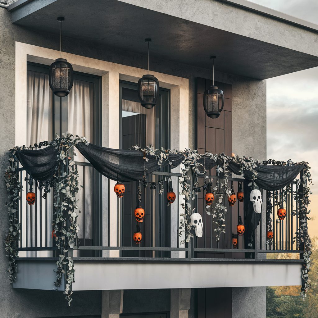 This quick and easy addition can have a powerful impact, turning your balcony into a true Halloween spectacle.