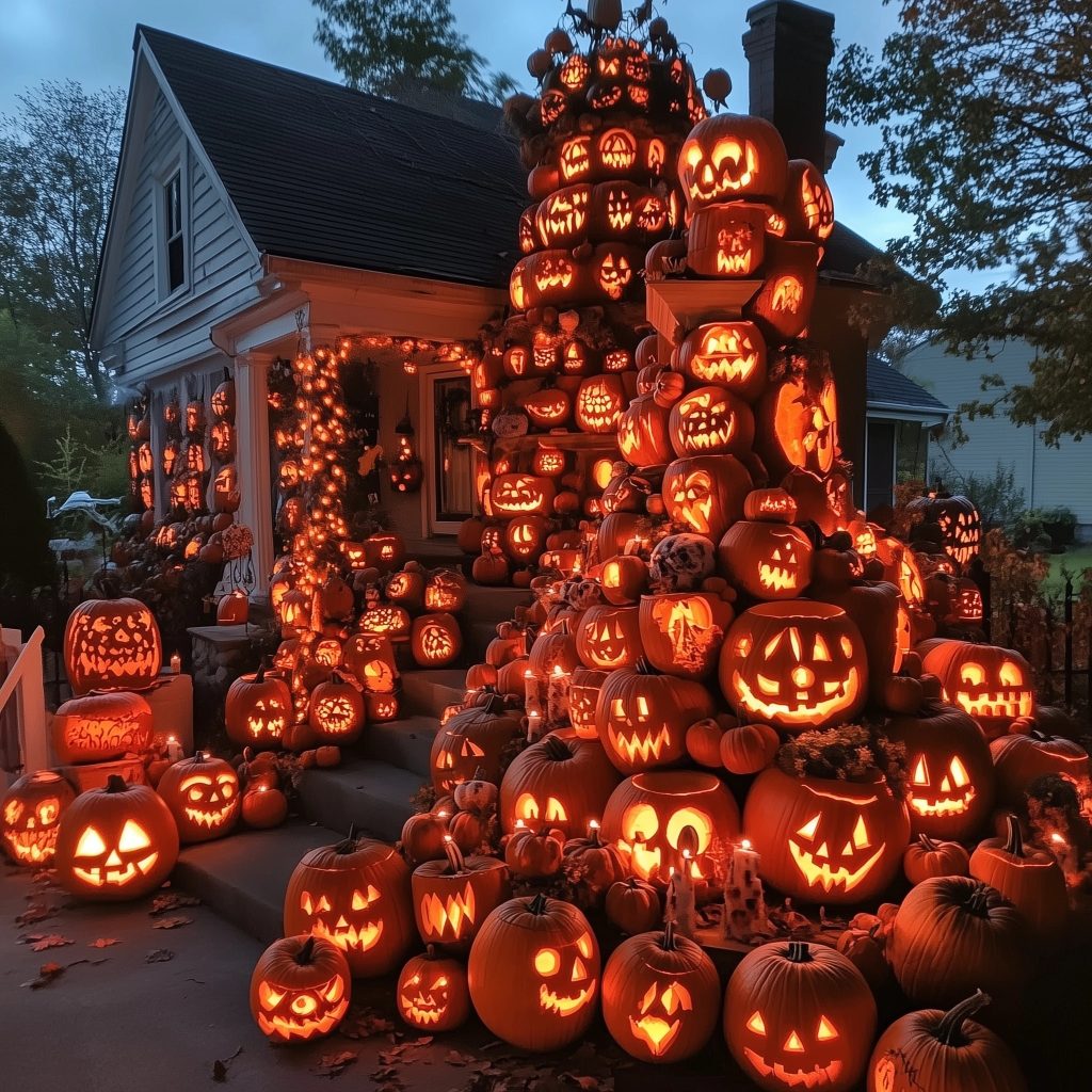 No Halloween setup is complete without the iconic charm of pumpkins — they’re a timeless symbol of the season and offer endless decorating possibilities. In your backyard, you can display them in creative and visually striking ways.