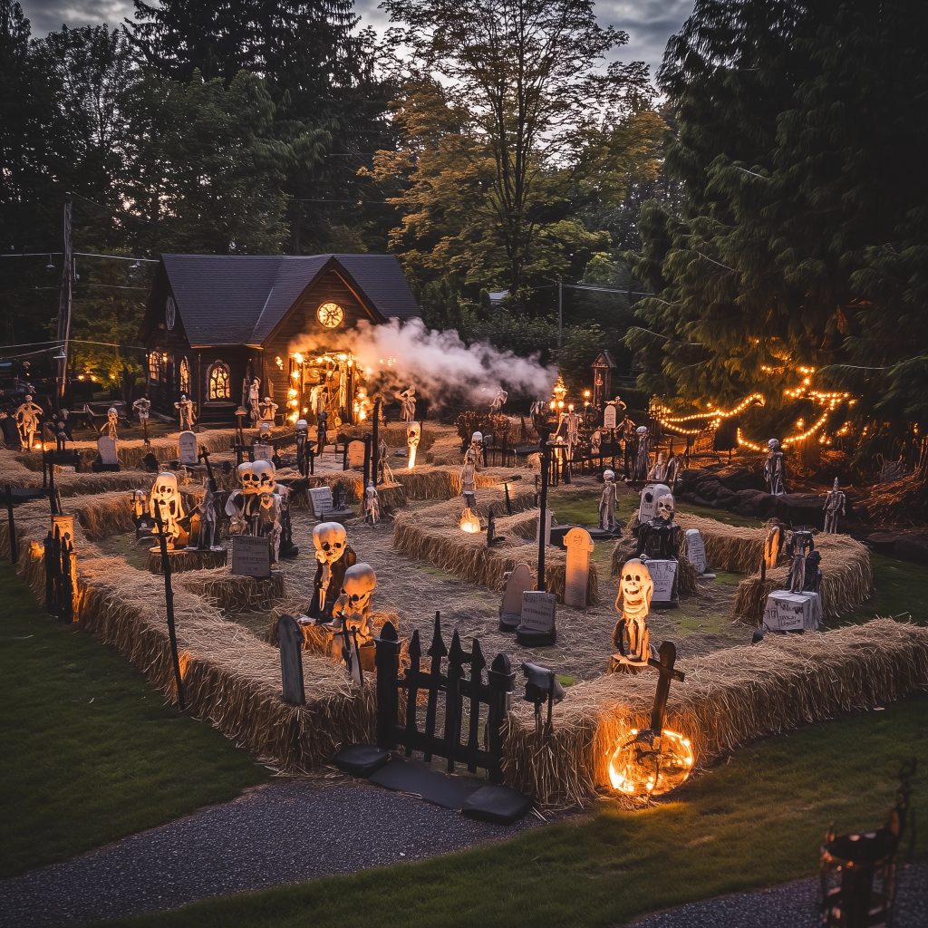 Designing a haunted maze in your yard is a fantastic way to bring both style and spine-chilling excitement to your Halloween setup. You can build a twisting, mysterious path using hay bales, old bedsheets, wooden pallets, or temporary fencing — perfect for guiding guests through a maze of eerie surprises.
