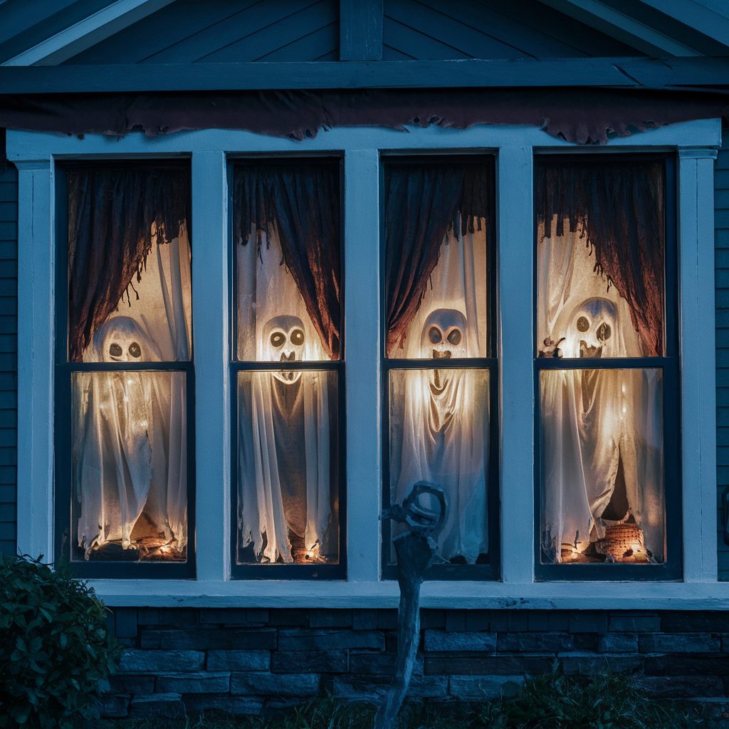 Hang up tattered curtains that sway in the wind and add an eerie touch, as if no one’s lived there for years. For an extra jolt of fright, position ghostly figures or skeleton heads so they appear to be peeking out through the glass — perfect for startling trick-or-treaters and passersby.