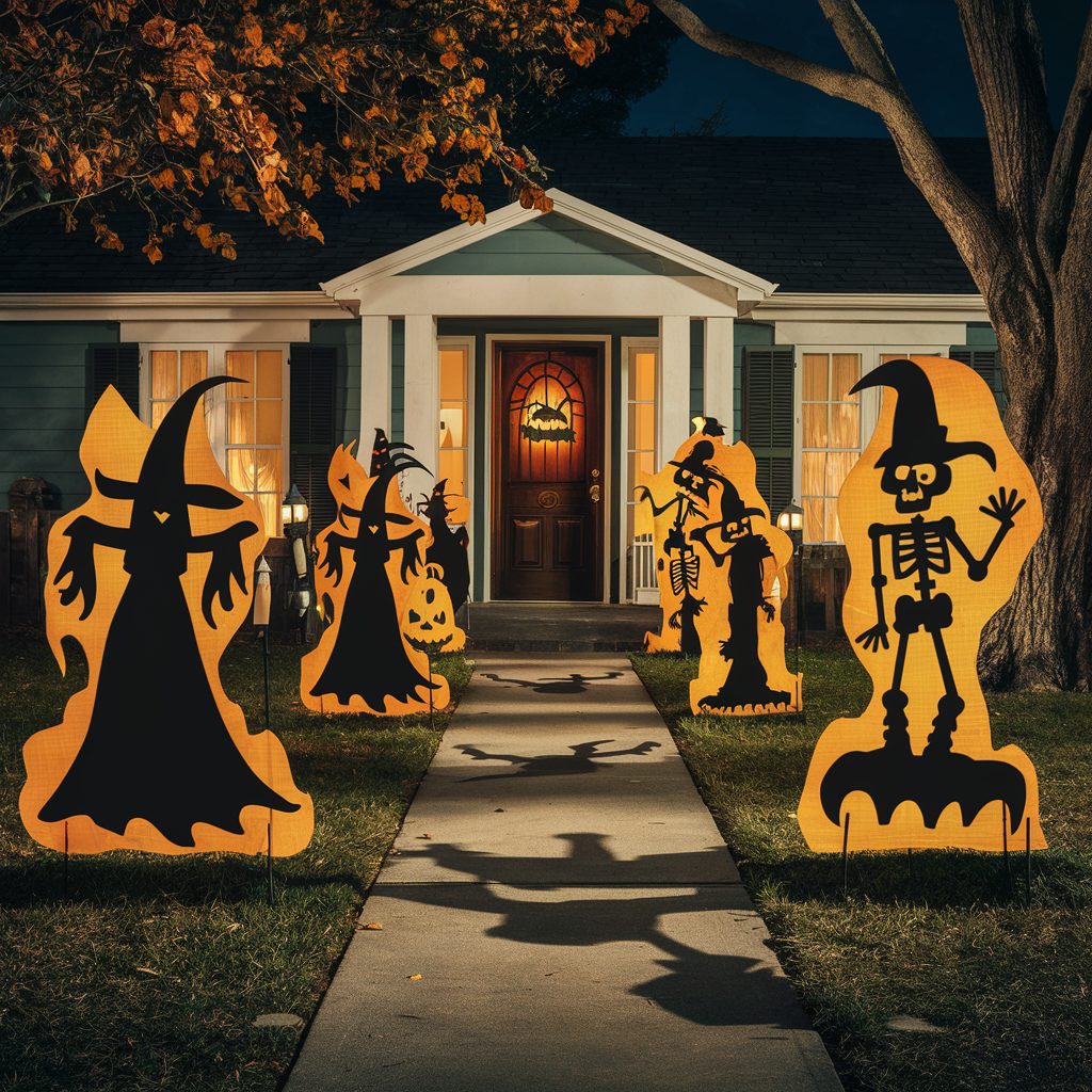 Using shadows in your Halloween decorations is a clever and atmospheric way to add suspense and mystery to your yard. Silhouettes can create an eerie visual story, especially when cast against walls or fences with the help of backlighting.