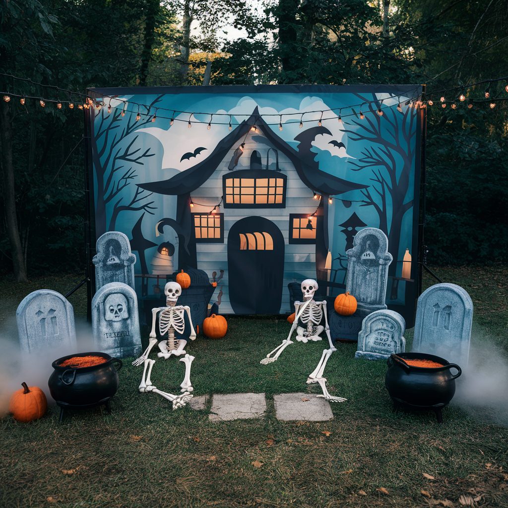 Setting up a Halloween-themed photo booth in your yard is a fun and engaging way to entertain guests while giving them a chance to capture festive memories. Design a spooky backdrop using tombstones, gnarled trees, and classic witch house decor to create a scene that feels straight out of a haunted story.