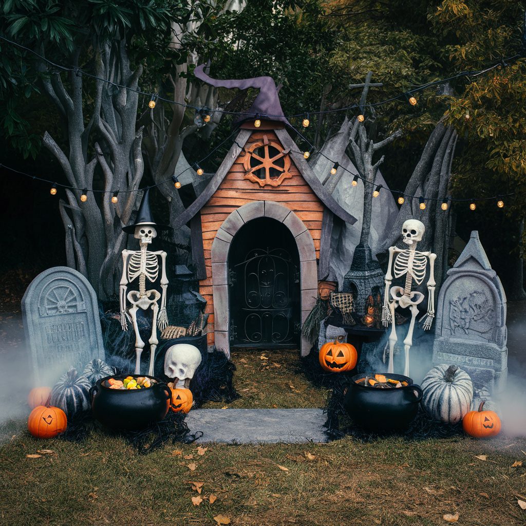 Your front yard is the perfect canvas to bring your Halloween outdoor decorating ideas to life just the way you envision them. It’s the first area guests see, so why not make a big impression? Start by positioning skeletons so they appear to be clawing their way out of the earth, giving off an eerie, undead vibe.