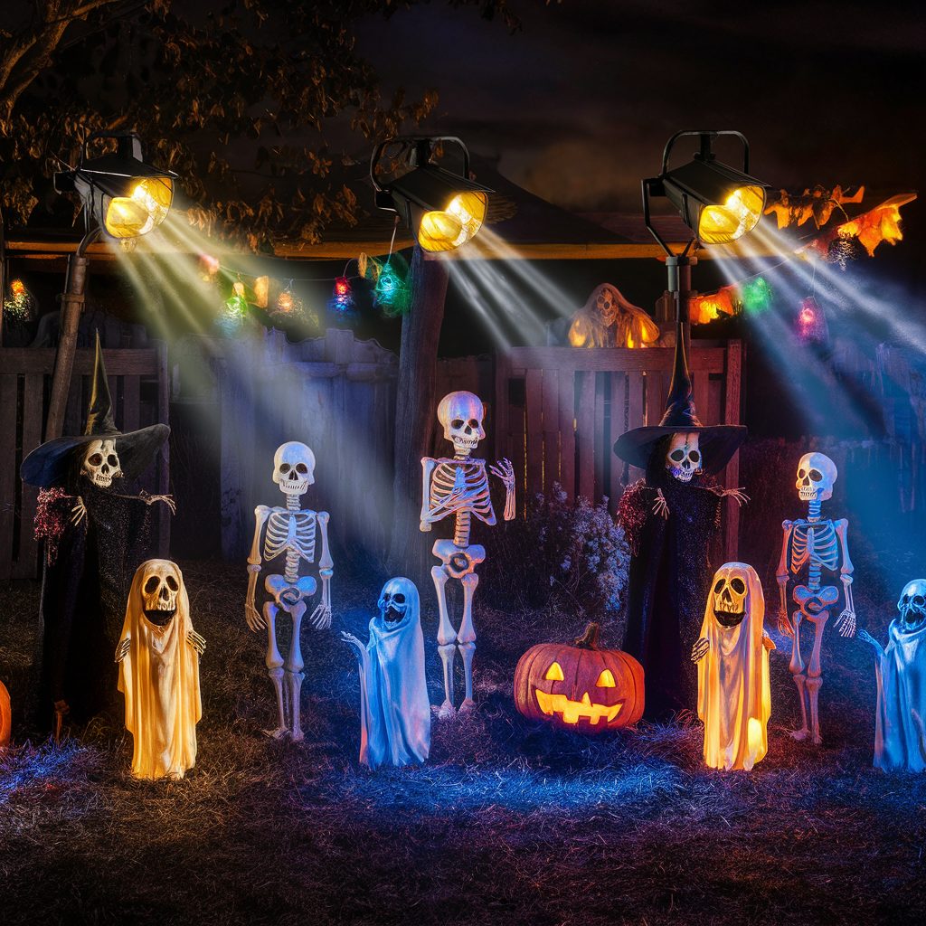 You can also line your walkways with themed path lights shaped like jack-o’-lanterns, skulls, or tombstones, guiding visitors through your spooky setup while adding visual interest. When thoughtfully planned, lighting doesn’t just illuminate—it transforms your yard from an ordinary space into a chilling Halloween spectacle that feels like a scene from a haunted story.