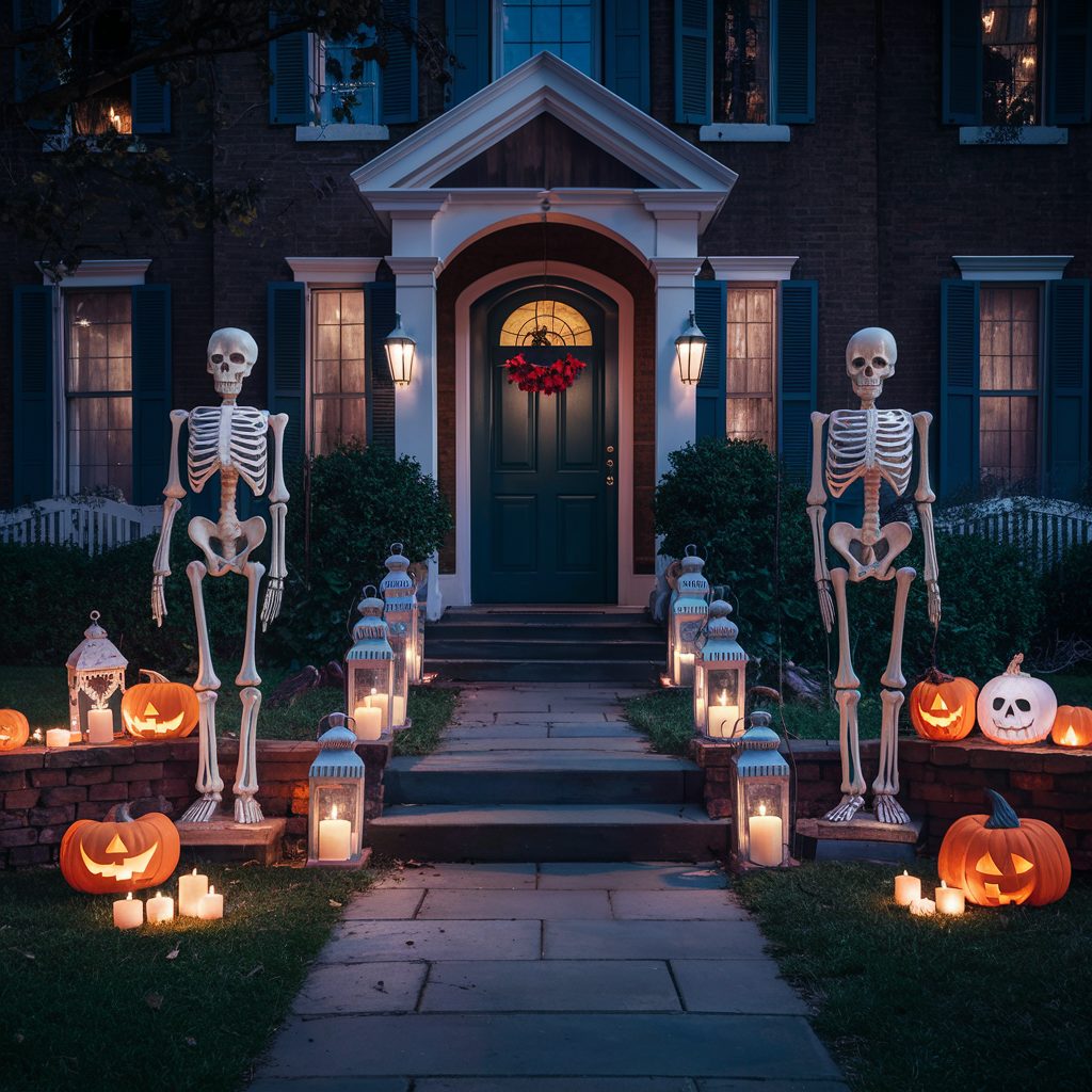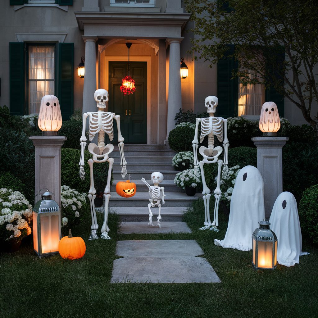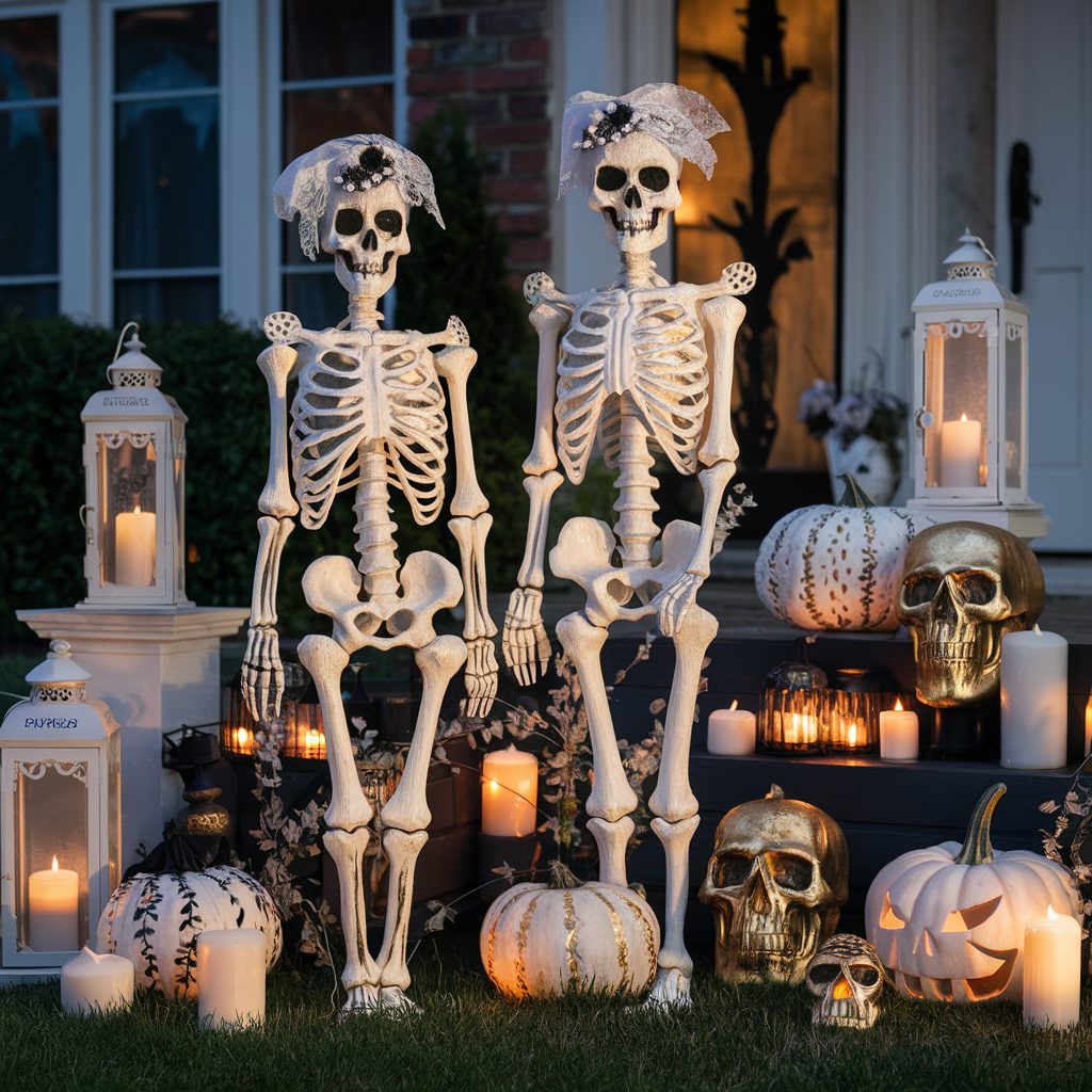 Think about incorporating decorative elements like sleek, sculptural skeletons, vintage-inspired lanterns, and tastefully placed candles that cast a soft, flickering glow across your yard.