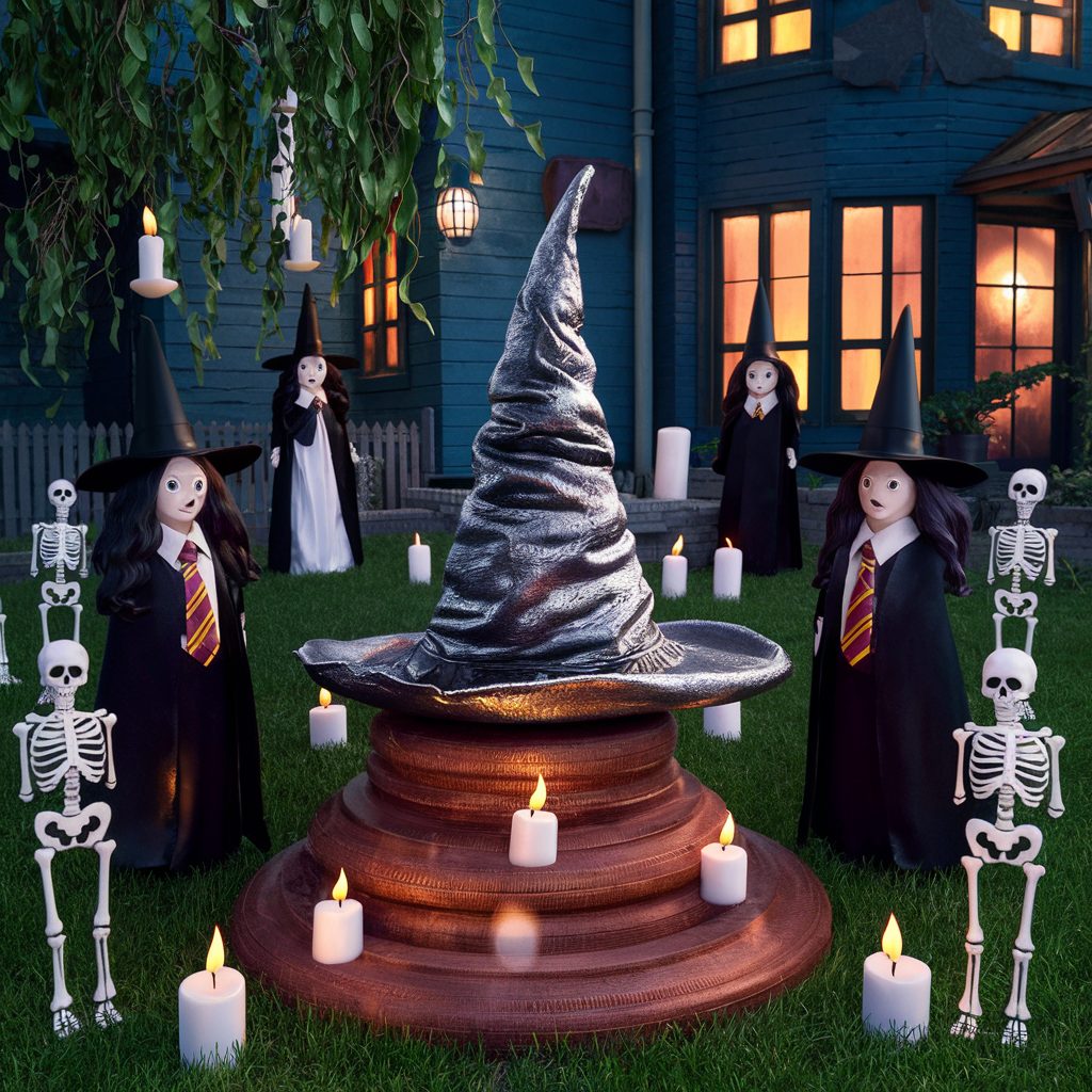 Bring a touch of enchantment to your Halloween yard by embracing a Harry Potter-themed decoration style that’s sure to captivate wizards and Muggles alike. Picture transforming your outdoor space into a magical scene straight out of Hogwarts, complete with a Sorting Hat perched on a pedestal, floating candles suspended from tree branches, and even a handcrafted replica of the Whomping Willow swaying in the breeze.