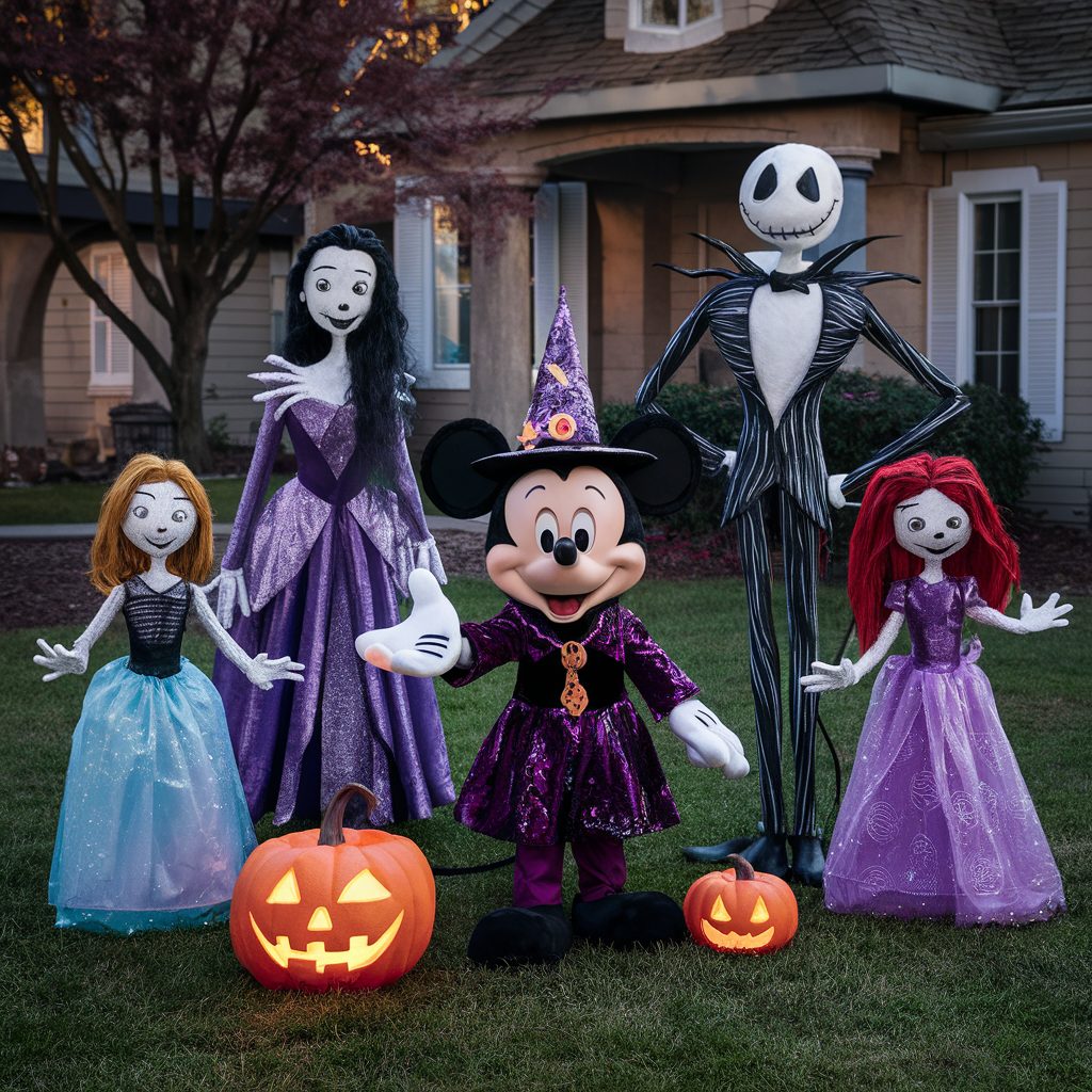 Add a sprinkle of enchantment to your Halloween yard by creating a Disney-themed display that’s both spooky and family-friendly. This fun and imaginative setup allows you to bring beloved characters to life with DIY creations, such as life-sized cut-outs or sculptures of Mickey Mouse dressed as a witch, Jack Skellington from The Nightmare Before Christmas, or even your favorite Disney princesses reimagined in eerie, Halloween-inspired outfits.
