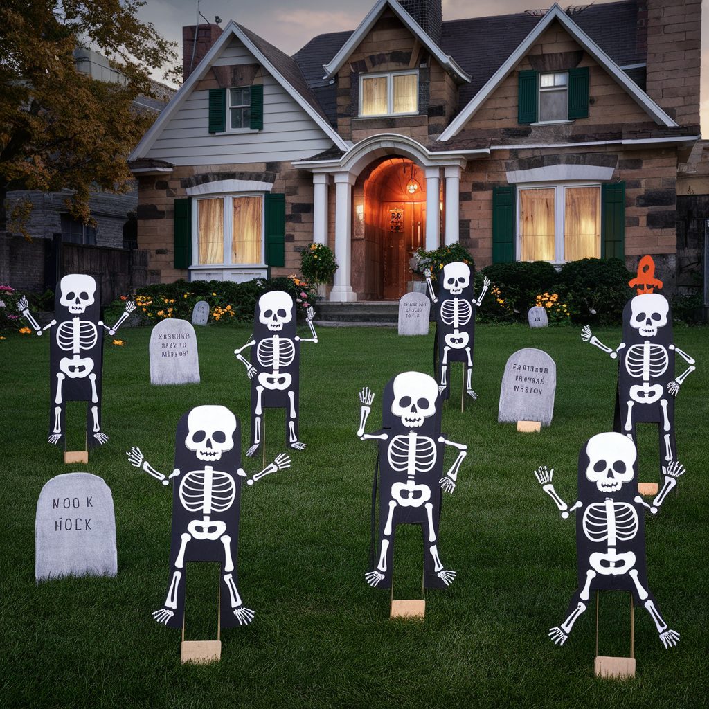 One of the best things about skeleton yard signs is their versatility—you can create them in any size, shape, or design to perfectly match your Halloween vision. Whether you’re going for scary, silly, or somewhere in between, these signs offer a simple yet eye-catching addition to your festive yard.