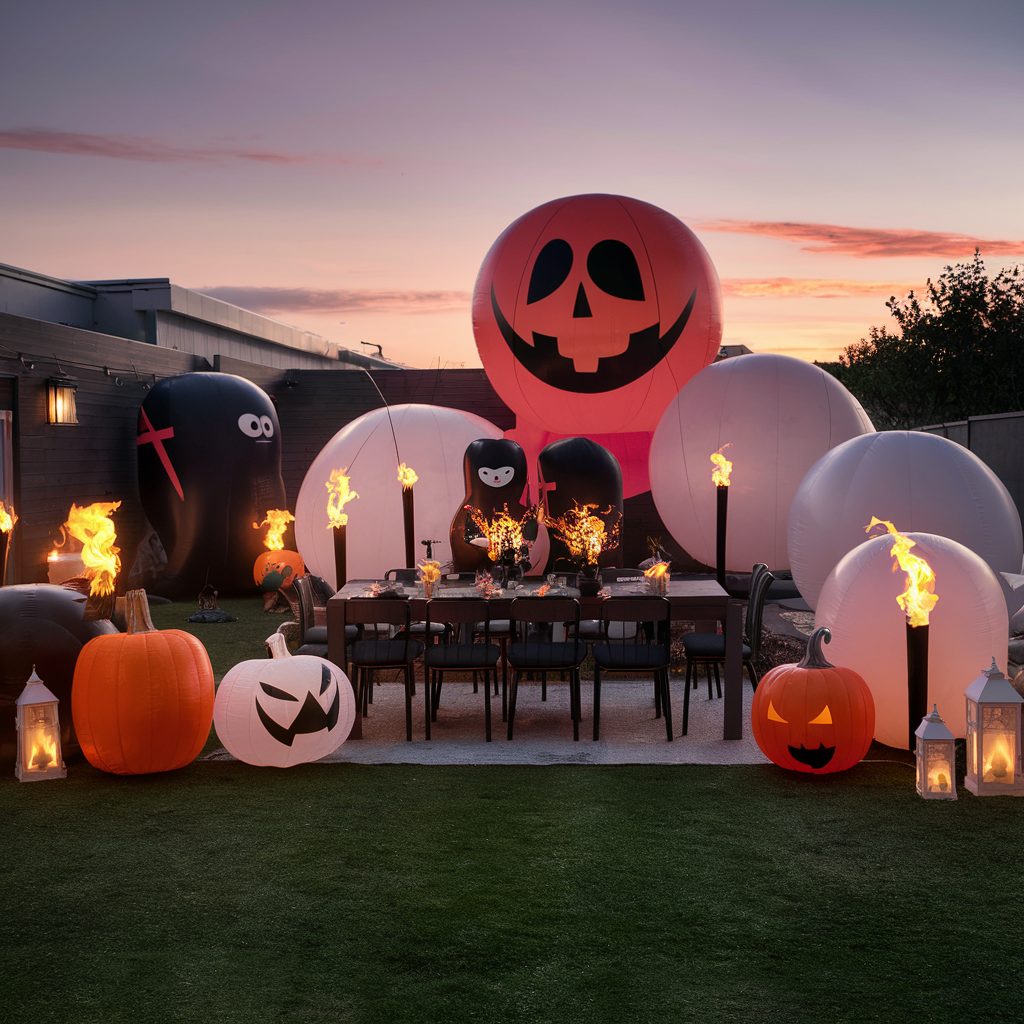 When organizing an outdoor Halloween party, the key to creating a memorable atmosphere lies in using bold, eye-catching decorations that make an immediate impact. Think oversized inflatables featuring spooky figures like towering black cats or a menacing Grim Reaper—these statement pieces are sure to grab attention and set the tone from the moment guests arrive.