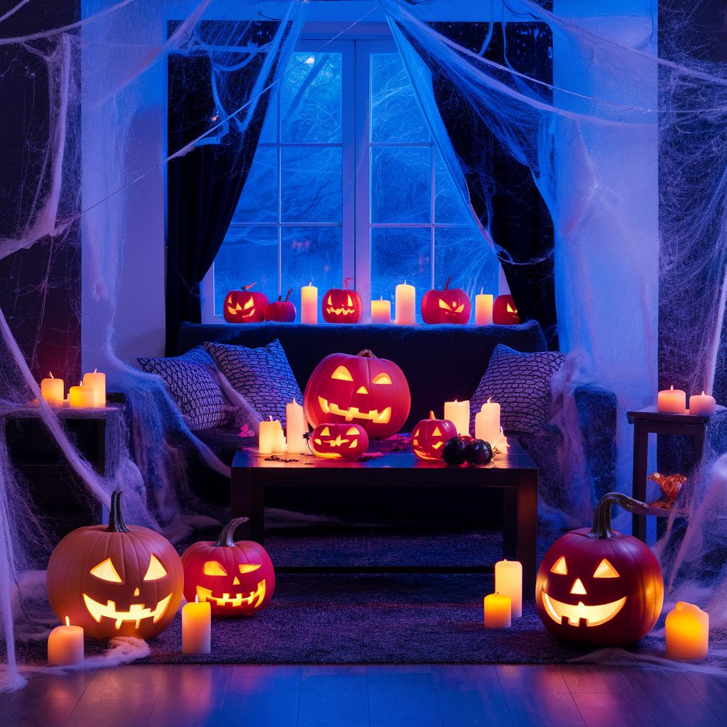 These small but strategic touches can dramatically alter the atmosphere. Simple yet powerful indoor Halloween party decorations—like draping furniture with dark, mysterious fabrics or placing eerie, glowing pumpkins as centerpieces—can heighten the spooky vibe.