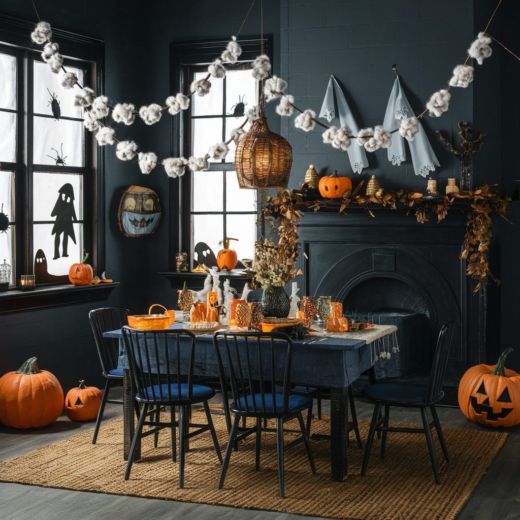 Creating your own indoor Halloween decorations adds a personal, creative touch that store-bought items simply can’t match. DIY projects let you infuse your unique style into every corner of your space. Try crafting spider webs from stretched cotton balls for a realistic, eerie effect, or sew charming ghost garlands using strips of white fabric.