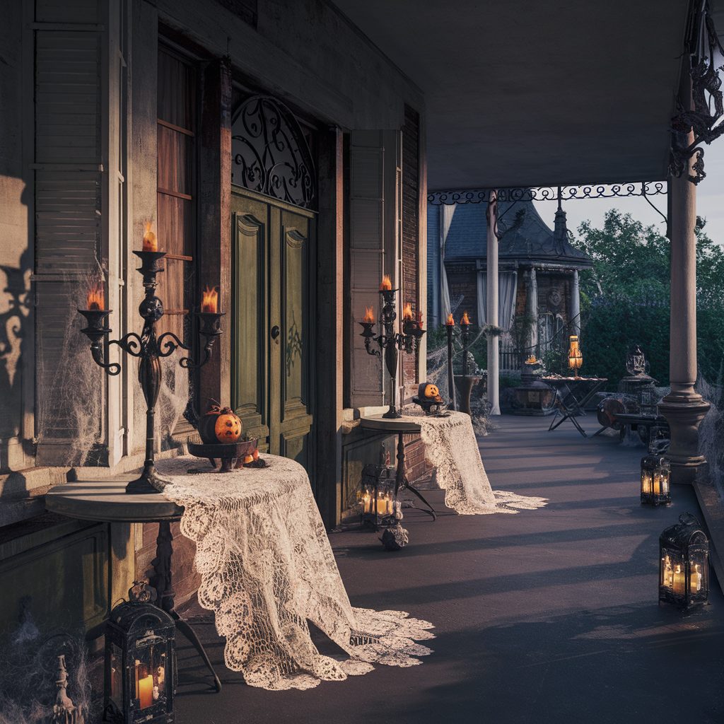 For fashion-forward decorators and lovers of European flair, a French-inspired Halloween porch offers the perfect blend of sophistication and spookiness. This style leans into timeless elegance while still capturing the eerie essence of the holiday. To bring this vision to life, incorporate elements like vintage wrought iron lanterns, ornate aged candelabras, and delicate lace table runners that exude Parisian charm.