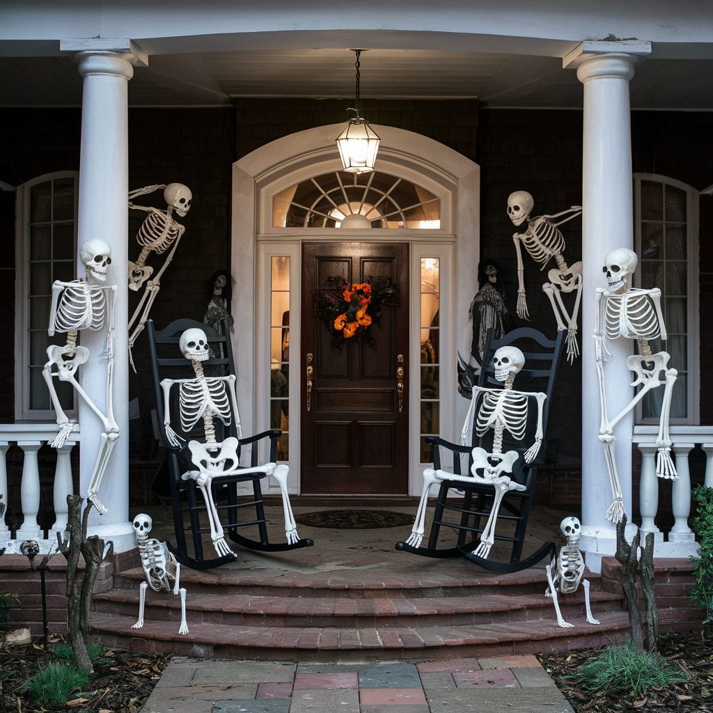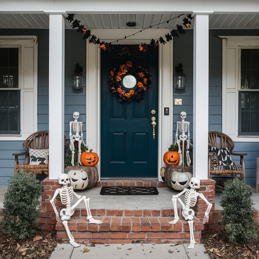 Skeletons are a Halloween staple, but they don’t have to be used in the typical loud or over-the-top way. With a little creativity and a refined approach, these spooky figures can be seamlessly incorporated into elegant porch designs.