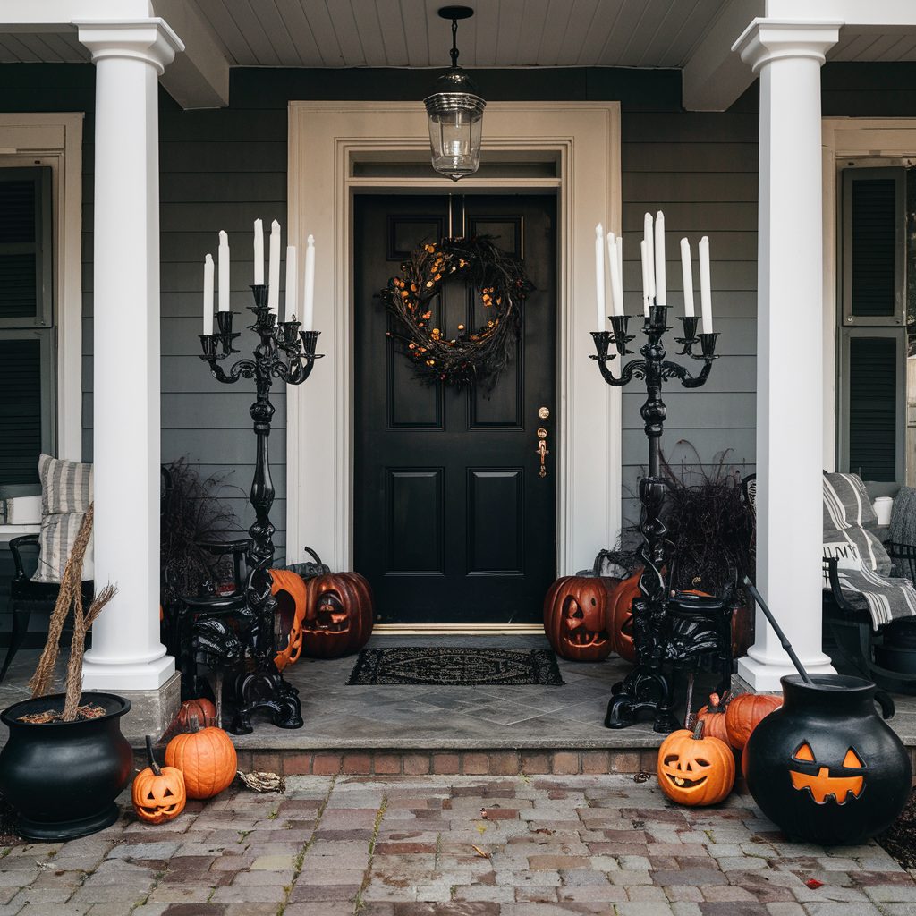 Halloween porch decor is far from a one-size-fits-all approach—it’s all about personal expression and creativity. Depending on your individual taste, you can craft a porch that leans into the spooky side, embraces a more elegant and classy vibe, or strikes a perfect balance between the two. For example, incorporating French-style candelabras alongside gothic design elements can give your porch a mysterious, romantic charm that stands out beautifully in the evening glow.