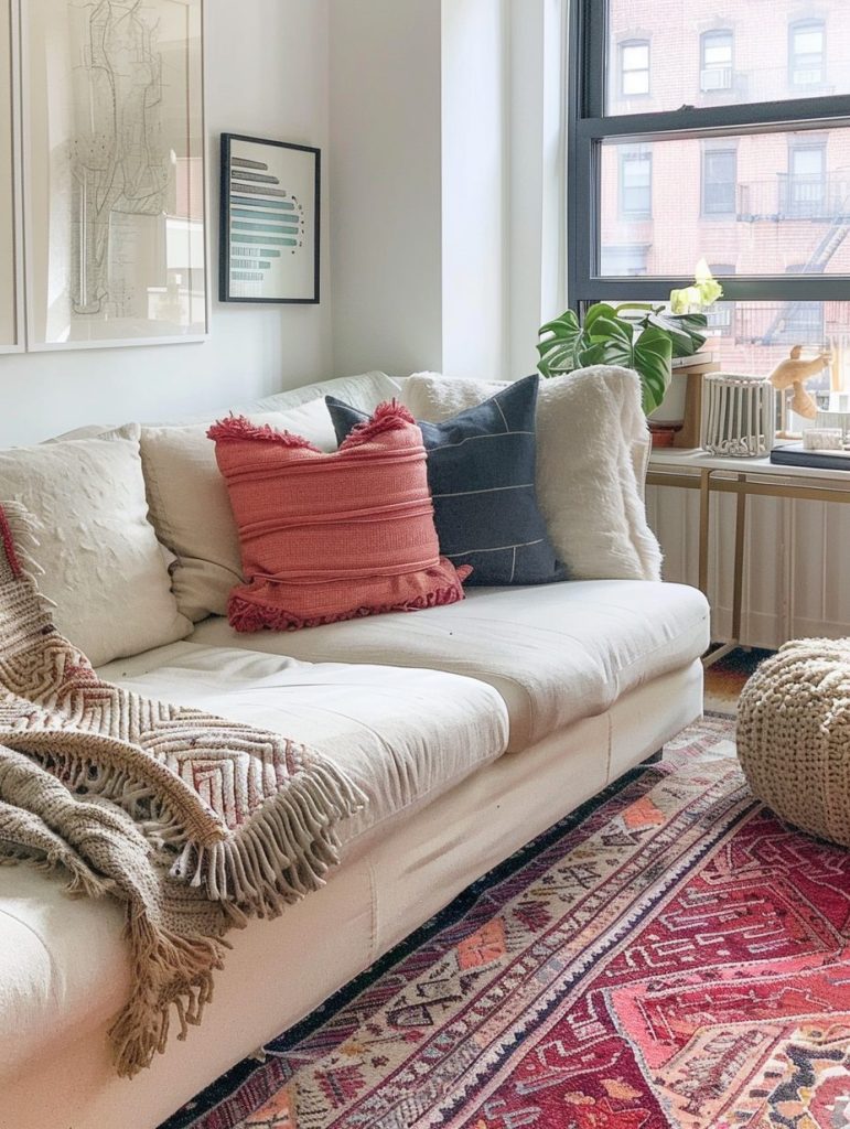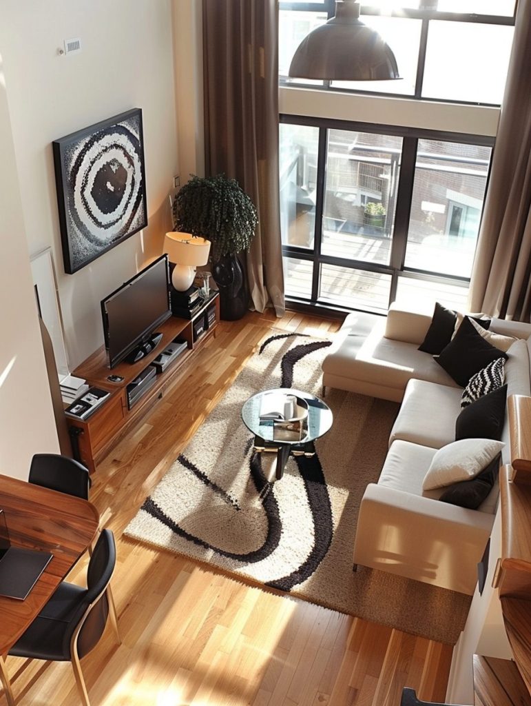 Rugs are a versatile décor element that not only adds warmth but also helps define different areas in your apartment living room. Use area rugs to anchor your seating arrangements or create a cozy nook for relaxation.