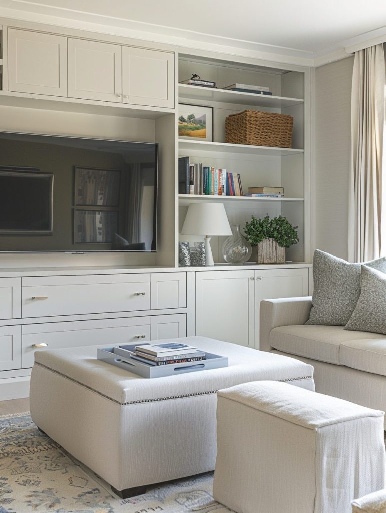 These solutions not only provide extra storage but also draw the eye upward, creating the illusion of a larger space. Vertical storage systems are both functional and visually appealing, helping to keep your living room neat while enhancing its aesthetic.