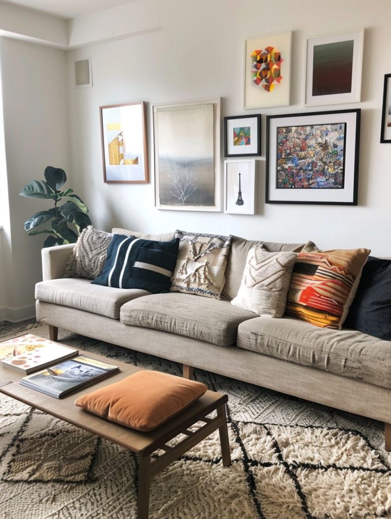Wall art is a creative and effective way to refresh your apartment living room. Choose pieces that truly reflect your personal style and taste, whether it’s framed art, abstract paintings, or a collection of mixed media. Not only do these pieces help establish the mood of the room, but they can also transform the entire space, making it feel unique and inviting.