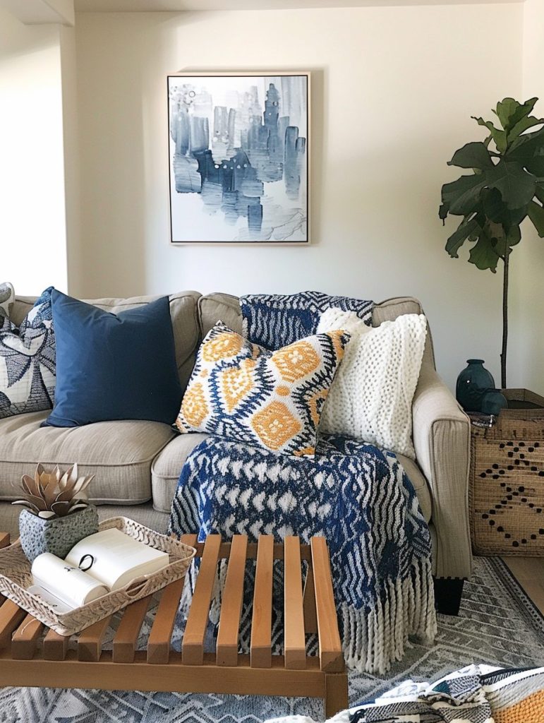 Combining various fabrics can create a sense of warmth and intimacy, making your living space feel inviting and snug.