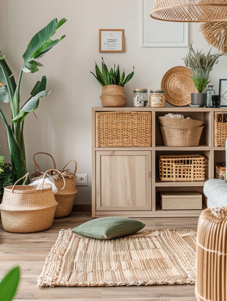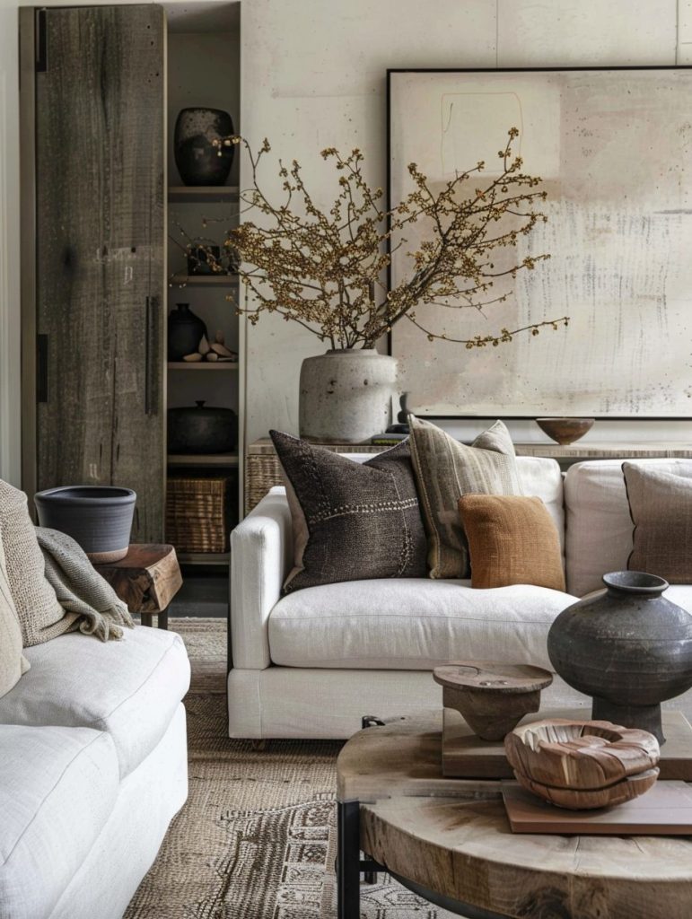 This combination is ideal for giving the room a rich, warm feel. A textured approach works beautifully in styles like boho, farmhouse, or modern, bringing depth and character to your décor.