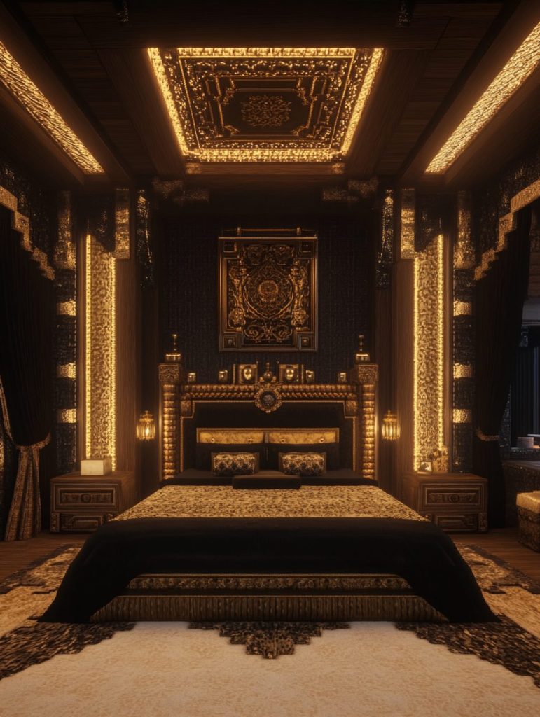 Designed to evoke the feel of a five-star hotel suite, this Minecraft bedroom style is ideal for those who want their space to reflect a blend of elite taste, comfort, and digital creativity.