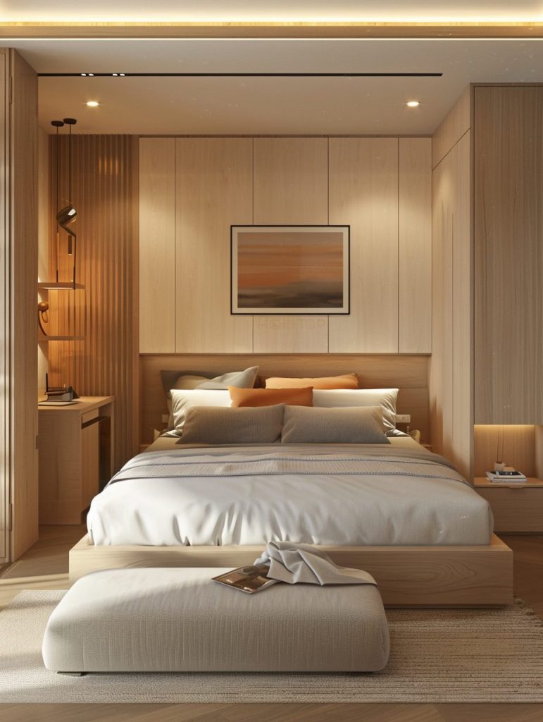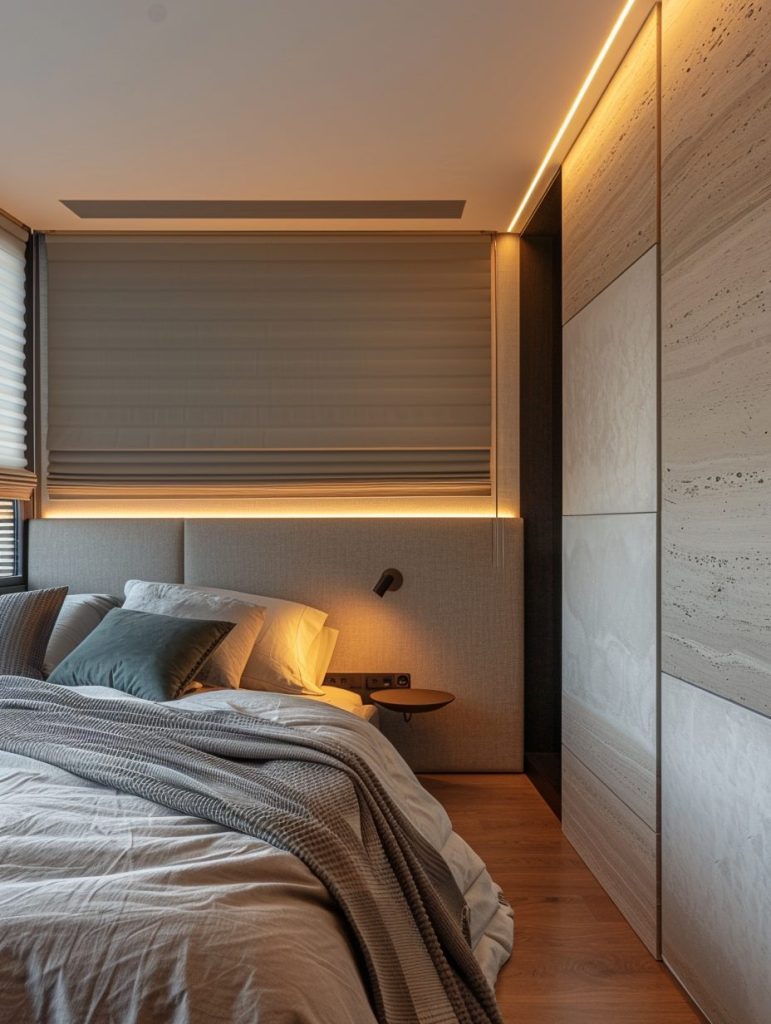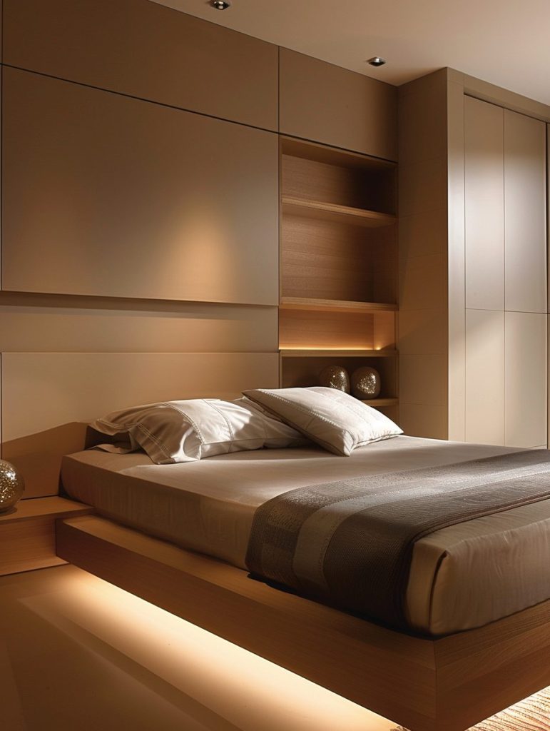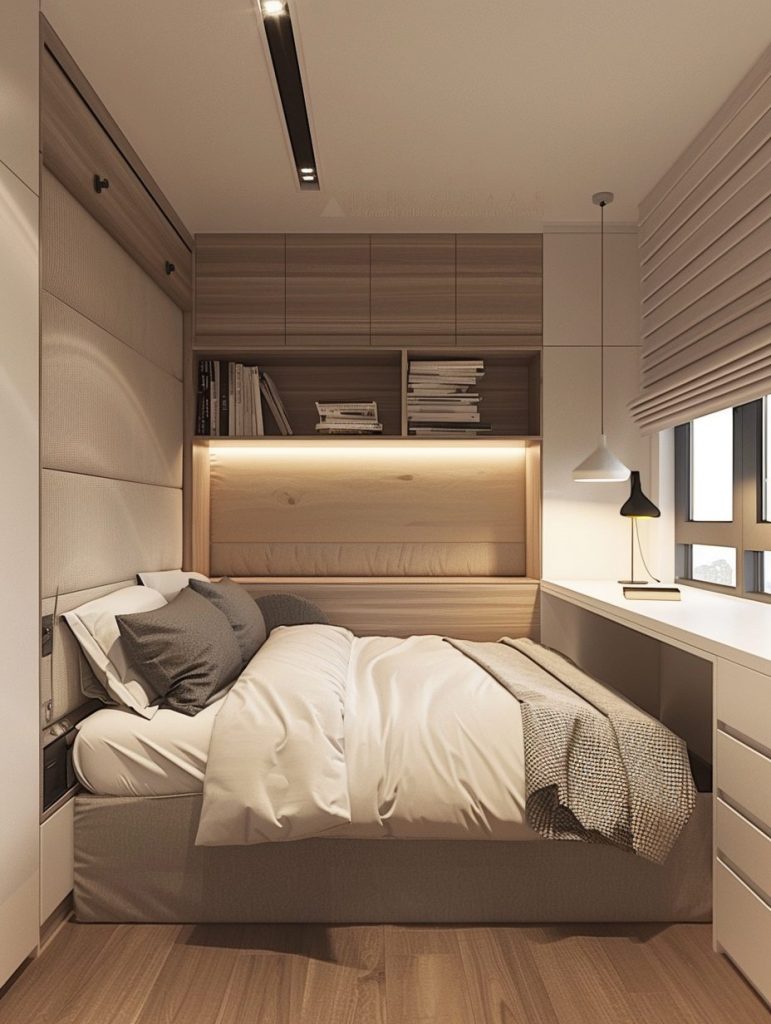 Built-in furniture is a smart way to maximize space while keeping the bedroom uncluttered. Consider incorporating built-in wardrobes, shelving units, or desks that seamlessly blend into the room’s design.