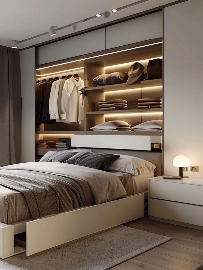 Maximizing storage is essential in modern bedroom designs. From built-in wardrobes to under-bed compartments, there are plenty of smart solutions to keep your space tidy and clutter-free.