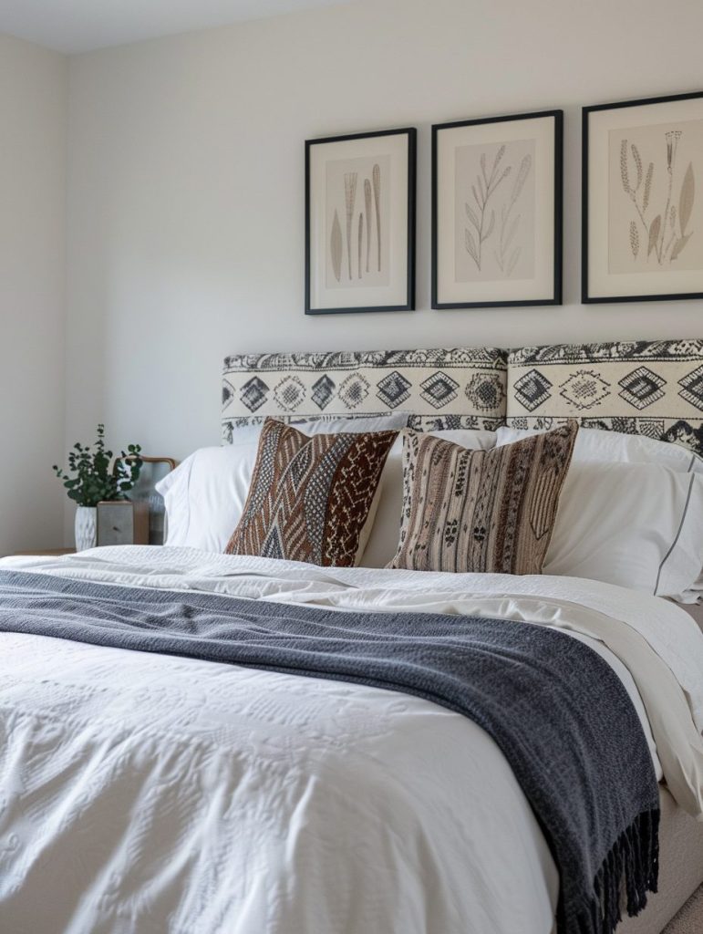 A distinctive headboard can serve as a bold centerpiece in a modern bedroom.