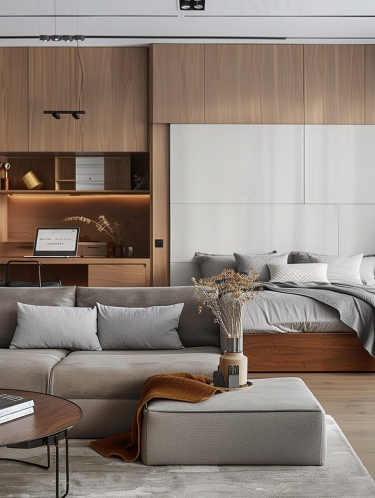 Multifunctional furniture is ideal for modern bedrooms, combining practicality with sleek design. Consider options like sofa beds, vanity tables with built-in storage, or ottomans that hide extra space inside.